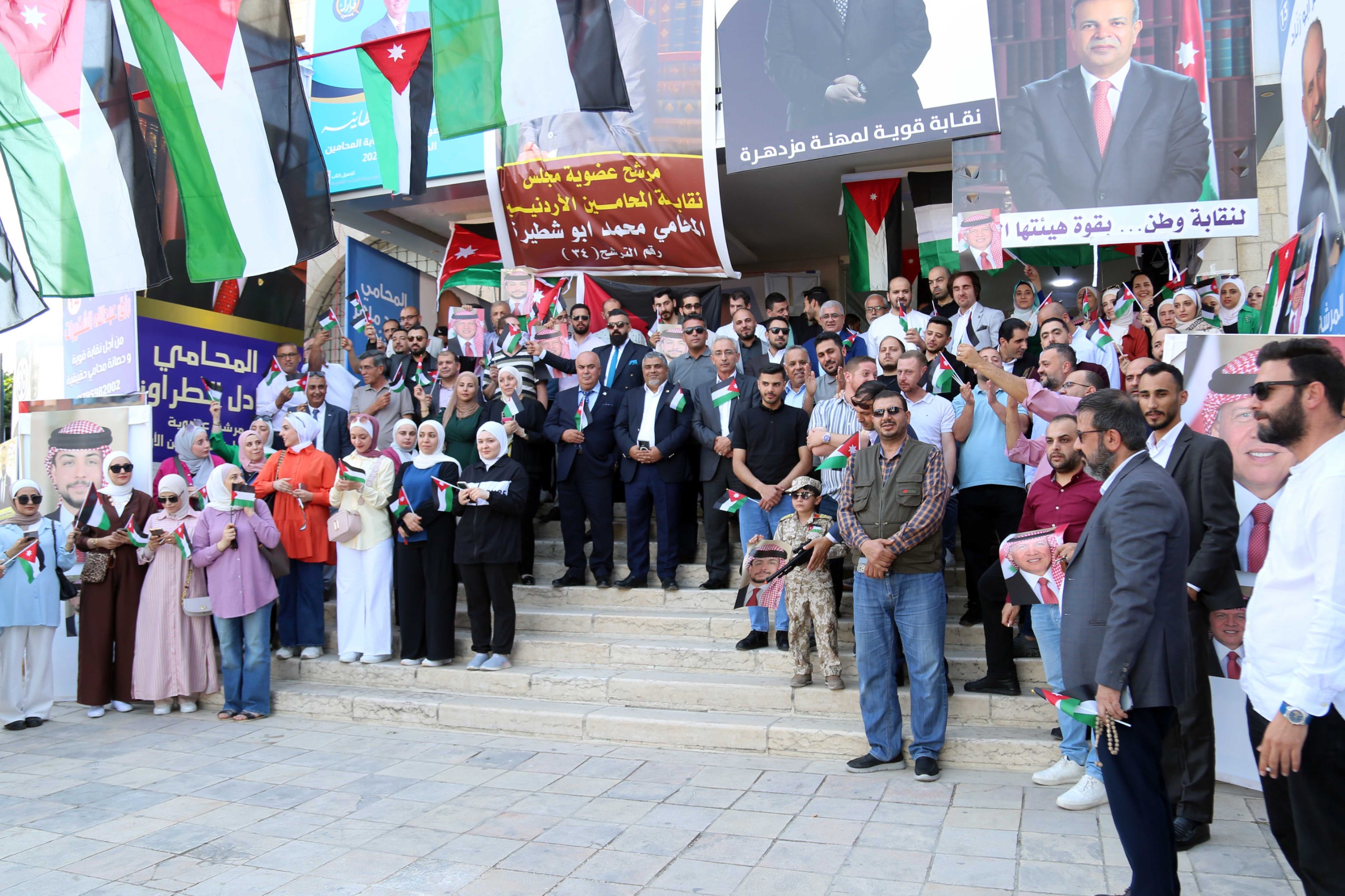 عمون - نظّم مجلس نقابة المهندسين وموظفوها وقفة احتفالية امام مجمع النقابات المهنية في عمان. بمناسبة عيد الاستقلال الـ79 للمملكة، تحدث فيها نائب النقيب م.احمد الفلاحات حيث أكد على دور النقابة والمهندسين في بناء الوطن. |