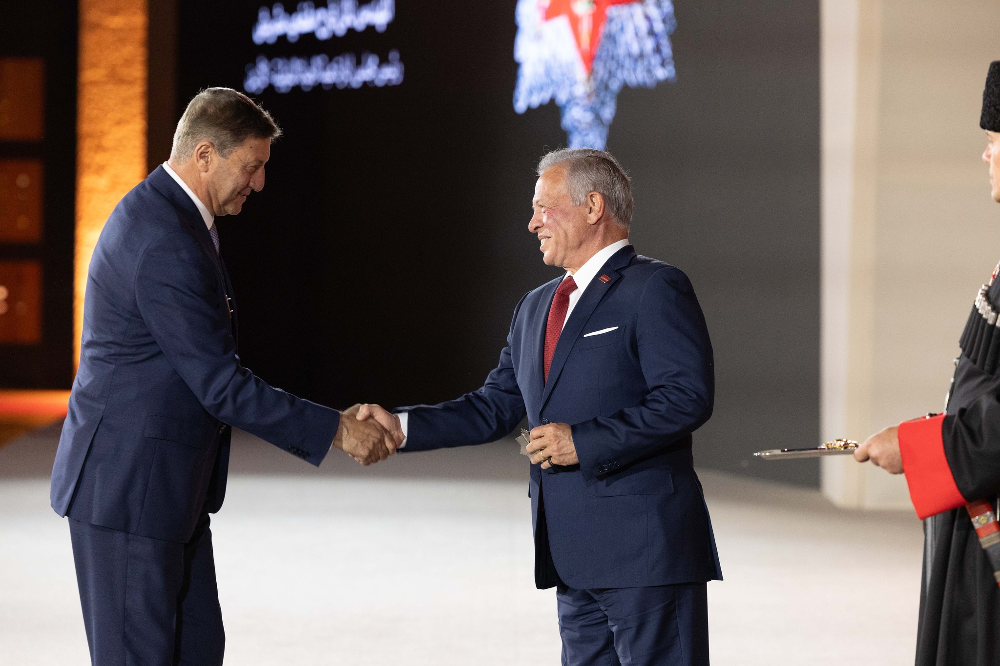 وأعرب عن اعتزازه بمواقف جلالة الملك الحكيمة في الدفاع عن قضايا الأمة، وفي مقدمتها القضية الفلسطينية والدفاع عن حقوق الشعب الفلسطيني والحفاظ على المقدسات الإسلامية والمسيحية في القدس بموجب الوصاية الهاشمية.