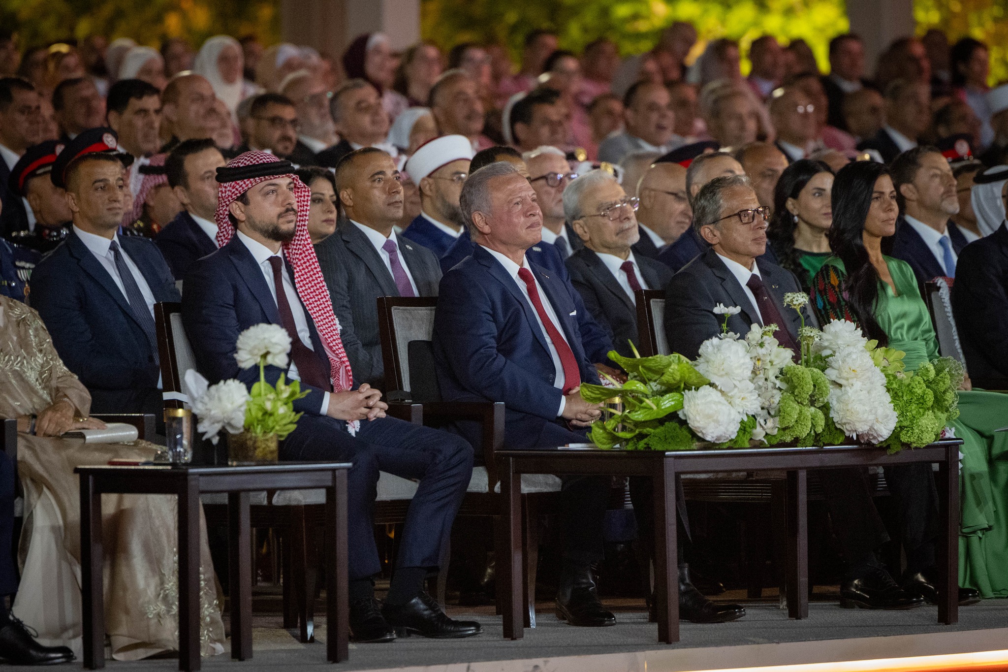 وألقى رؤساء السلطات، بحضور سمو الأمير هاشم بن عبدﷲ الثاني وعدد من أصحاب السمو الأمراء والأميرات، والسادة الأشراف، كلمات عبروا فيها عن أسمى معاني الفخر والاعتزاز بما حققه الأردن، بقيادة جلالة الملك من إنجازات وتطور في المجالات كافة، مؤكدين الاستمرار في البناء والتحديث بما ينعكس على نهضة الوطن ورفعته.