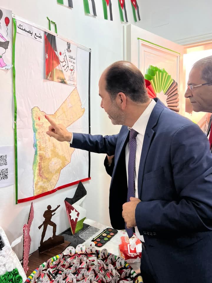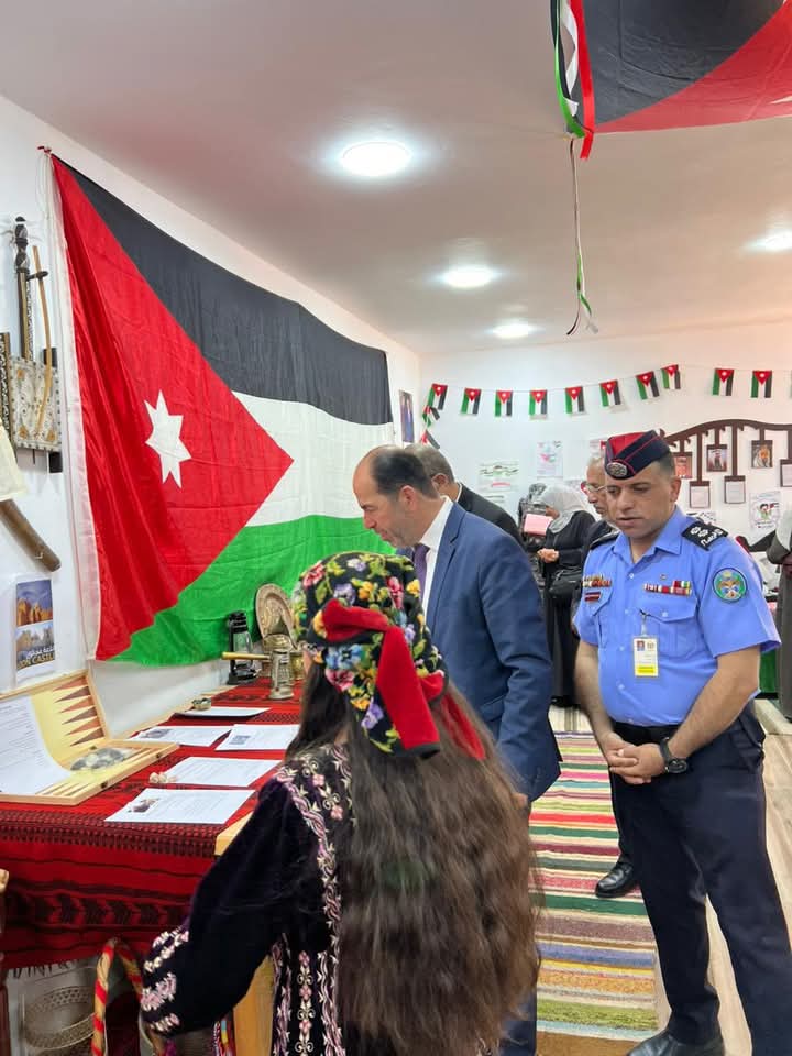 وتجول الحوامدة بأركان المعرض الذي اشتمل على مقتنيات تراثية مثل الأزياء والأدوات التقليدية وبعض المأكولات الشعبية وذلك ترسيخًا لأهمية التراث الشعبي كجزء لا يتجزء من الهوية الأردنية ، مما أضفى طابعًا تفاعليًا جاذبًا للزوار وعكس مدى تفاعل المجتمع المحلي مع الأنشطة المدرسية .