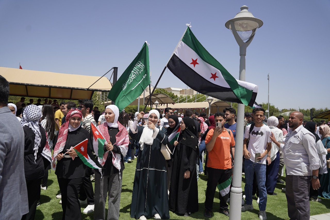 عمون - جسّدت جامعة الشرق الأوسط مشهدًا رمزيًا للوحدة العربية والانتماء الوطني، في احتفالها الرسمي بالذكرى التاسعة والسبعين لاستقلال المملكة الأردنية الهاشمية، بمشاركة وفود دبلوماسية، ونيابية، وأمنية رفيعة المستوى، ووجهاء المجتمع المحلي، وعدد من الشخصيات القيادية من قطاعات مختلفة، إلى جانب طلبة يمثلون أطياف الجاليات العربية، في فعالية عكست حيوية الهوية الوطنية، واتساع أفق الالتزام العربي المشترك.