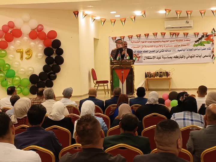 وأشار العمايرة في كلمته إلى أن ذكرى الاستقلال تمثل فرصة لتجديد العهد للوطن والقيادة، ومناسبة للوقوف على ما تحقق من إنجازات في ظل القيادة الهاشمية، خاصة في قطاع التعليم الذي يُعدّ ركيزة أساسية في بناء الوطن وتنشئة الأجيال.