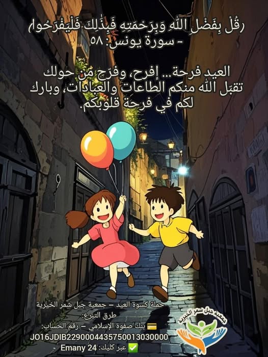 يأتي ذلك في ظل أجواء عيد الأضحى المبارك، وتحت شعار "فرحتهم عيدك"، حيث تهدف لتأمين كسوة العيد للأطفال من الأسر المتعففة، من خلال توزيع كوبونات شراء تُمكّن العائلات من اختيار ما يناسب أبناءها بكل كرامة وخصوصية.