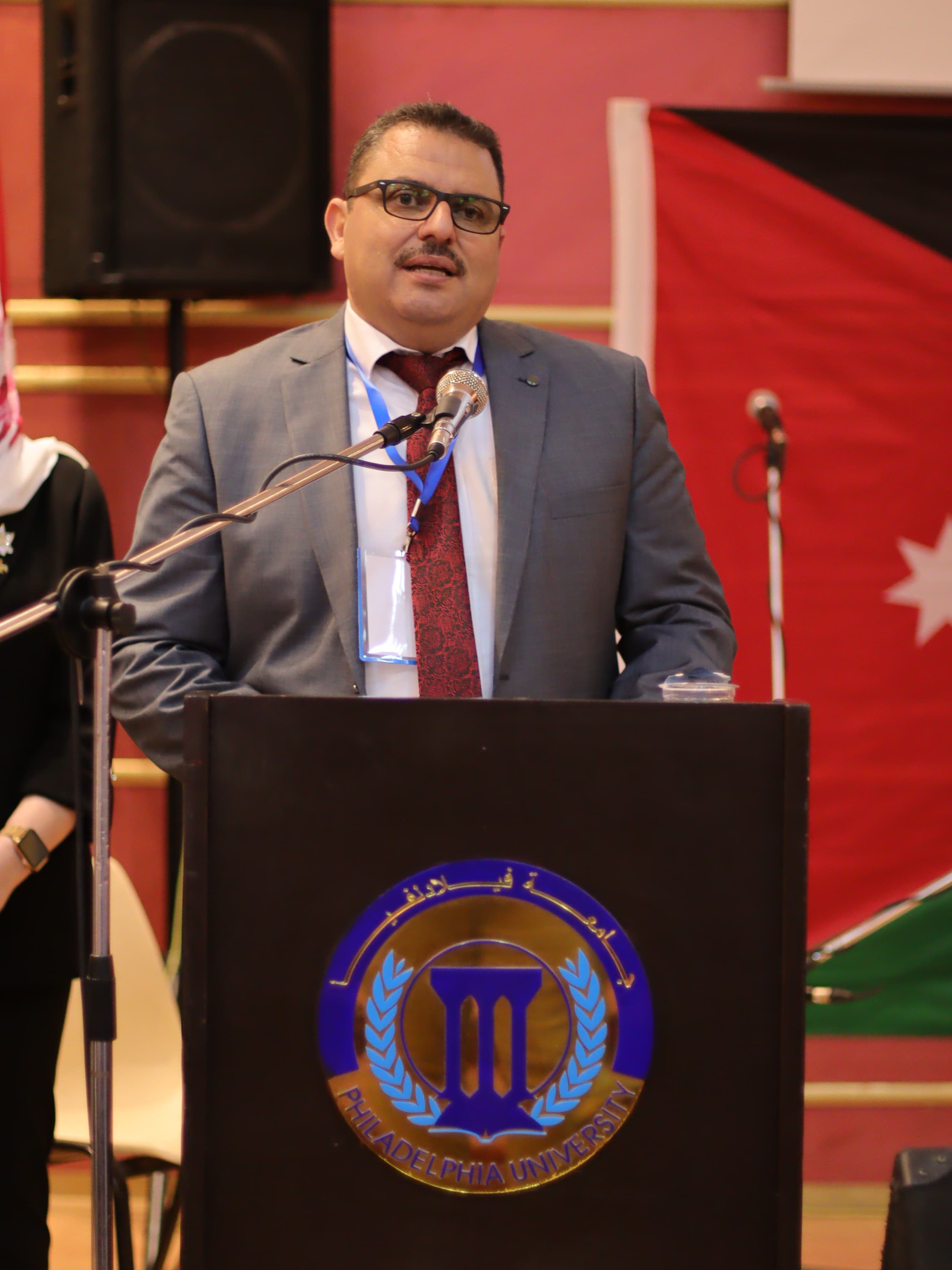 من جانبه، رحّب عميد كلية العمارة والتصميم في جامعة فيلادلفيا الدكتور علاء طالب عبيدات بالحضور والمشاركين، مشيرًا إلى أهمية هذا الملتقى في تعزيز الفكر التصميمي الذي يوازن بين البعد الجمالي والتقني.