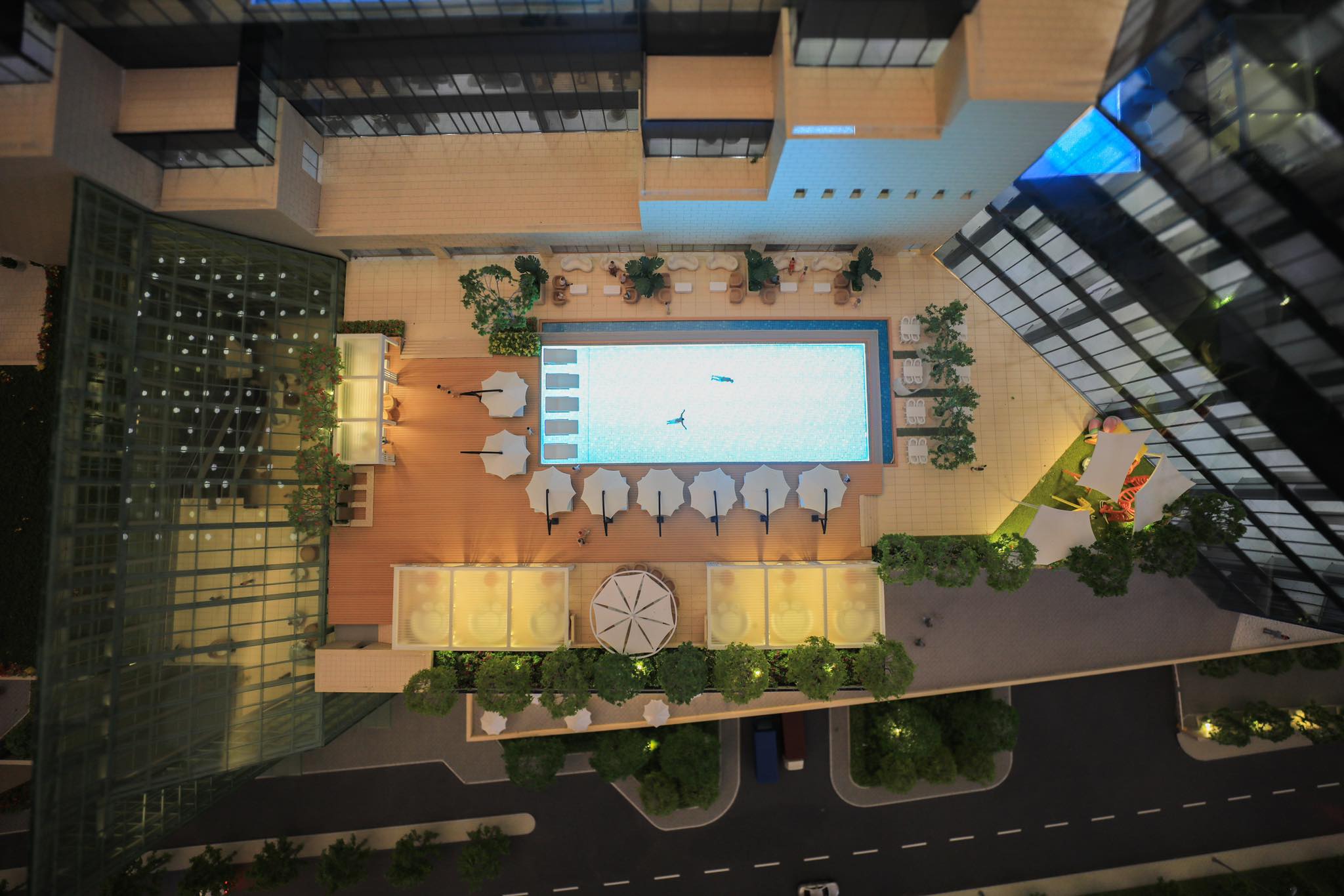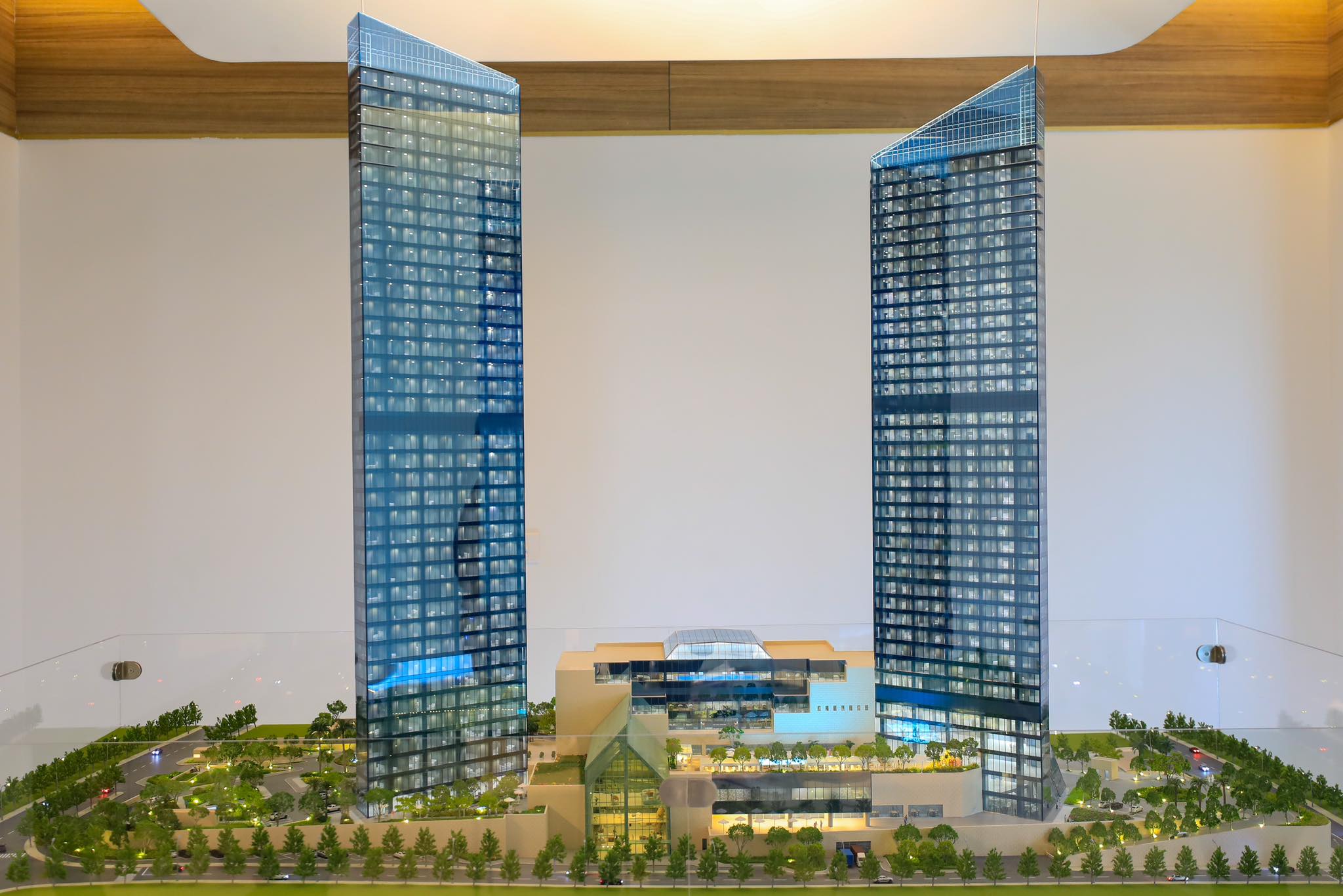 يشار الى ان المشروع يتكون من 43 طابقا بواقع 216 شقة بتصاميم متعددة تتراوح مساحاتها من غرفة الى 4 غرف بالإضافة الى شقتين (بنتهاوس) فاخرتين ، ومركز تجاري يضم 72 محلاً وناد صحي وملعب خارجي وبركة سباحة خارجية وحدائق ومواقف سيارات تتسع لحوالي 1800 سيارة.