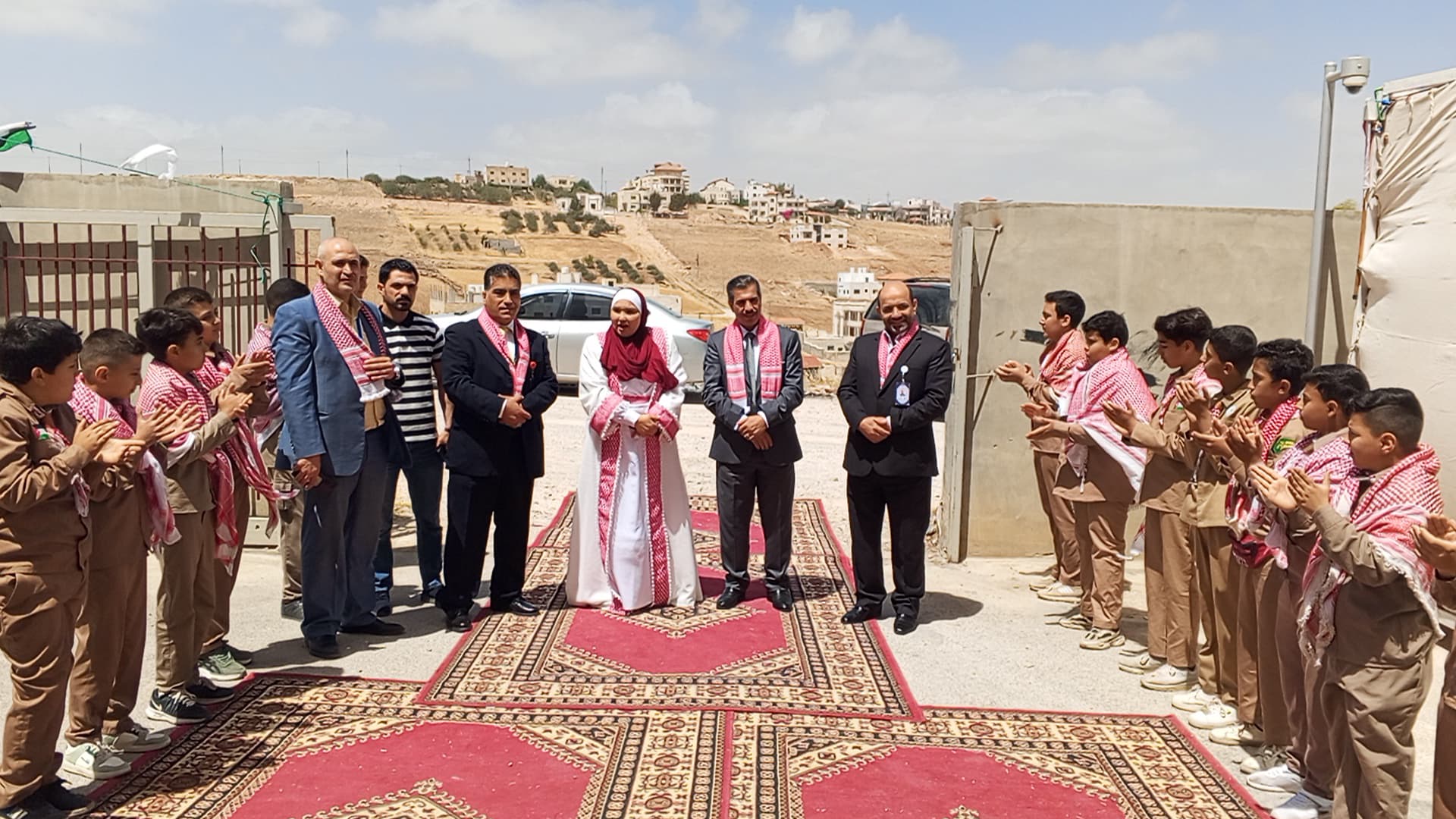 واستقبلهم نخبة من الكشافة بالصيحات الكشفية، وعرض موسيقي، ومعرض شعبي تراثي من أدوات والعاب تراثية وأكلات شعبية، تلاها افتتاح المعرض الفني الذي شمل على العديد من الصور واللوحات الفنية التي تتغنى بالوطن والملك، ومعرض تراثيا يحاكي التراث الاردني الأصيل والفلكلور الاردني الشعبي من ازياء شعبية واغراض تراثية.