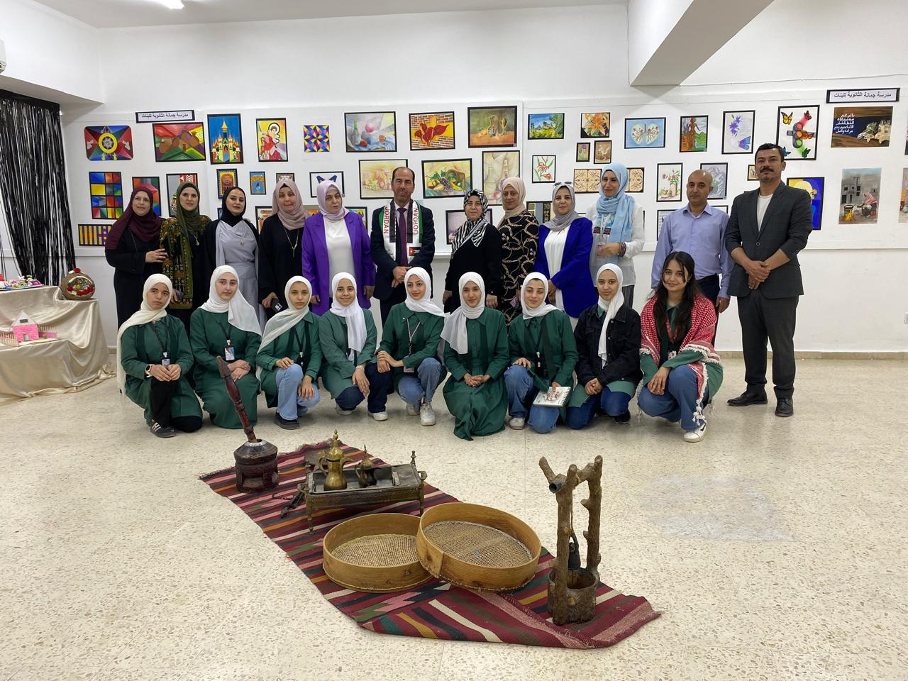 وتجول الحوامدة بالمعرض الذي اشتمل على لوحات فنية من تصميم وانتاج طالبات مسار التعليم المهني التقني BTEC / الفن والتصميم، استجابة للسيناريوهات والمهمات في الواجبات المطلوبة ، طبقن فيها ما تعلمنه خلال العام الدراسي في مجالات الخياطة والرسم وتوظيف المواد المعاد تدويرها، حيث نالت اعجاب الحضور.