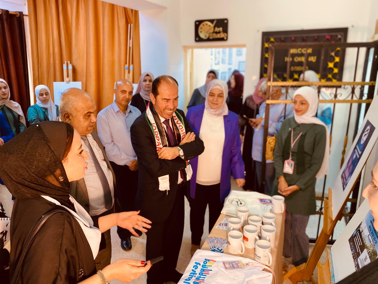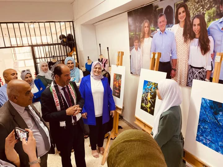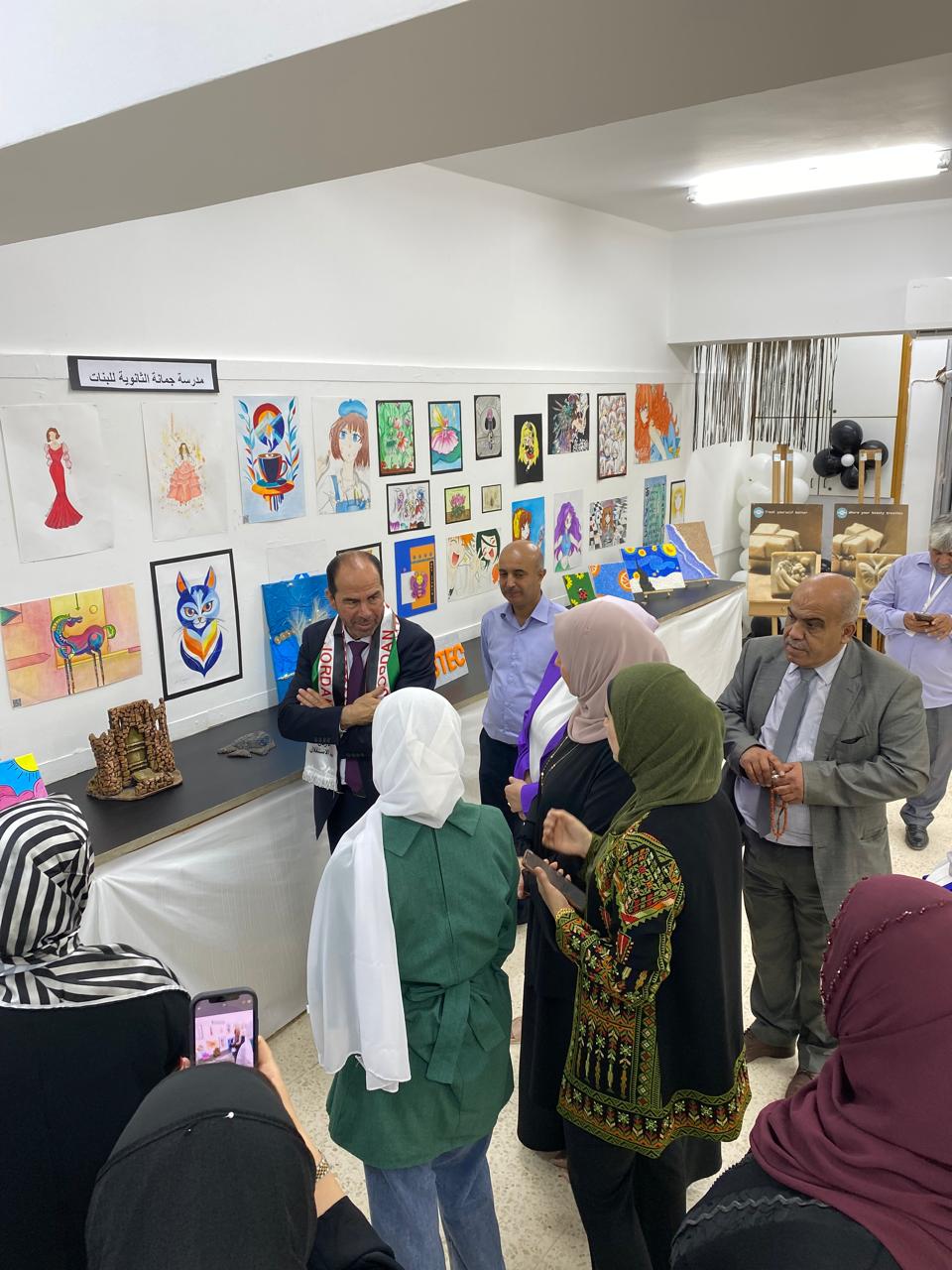 عمون - افتتح مدير التربية و التعليم للواء الرمثا الدكتور فيصل الحوامدة في مدرسة جمانة بنت أبي طالب للبنات معرض مرايا الغد بأيدي المستقبل/ الفن والتصميم BTEC،
