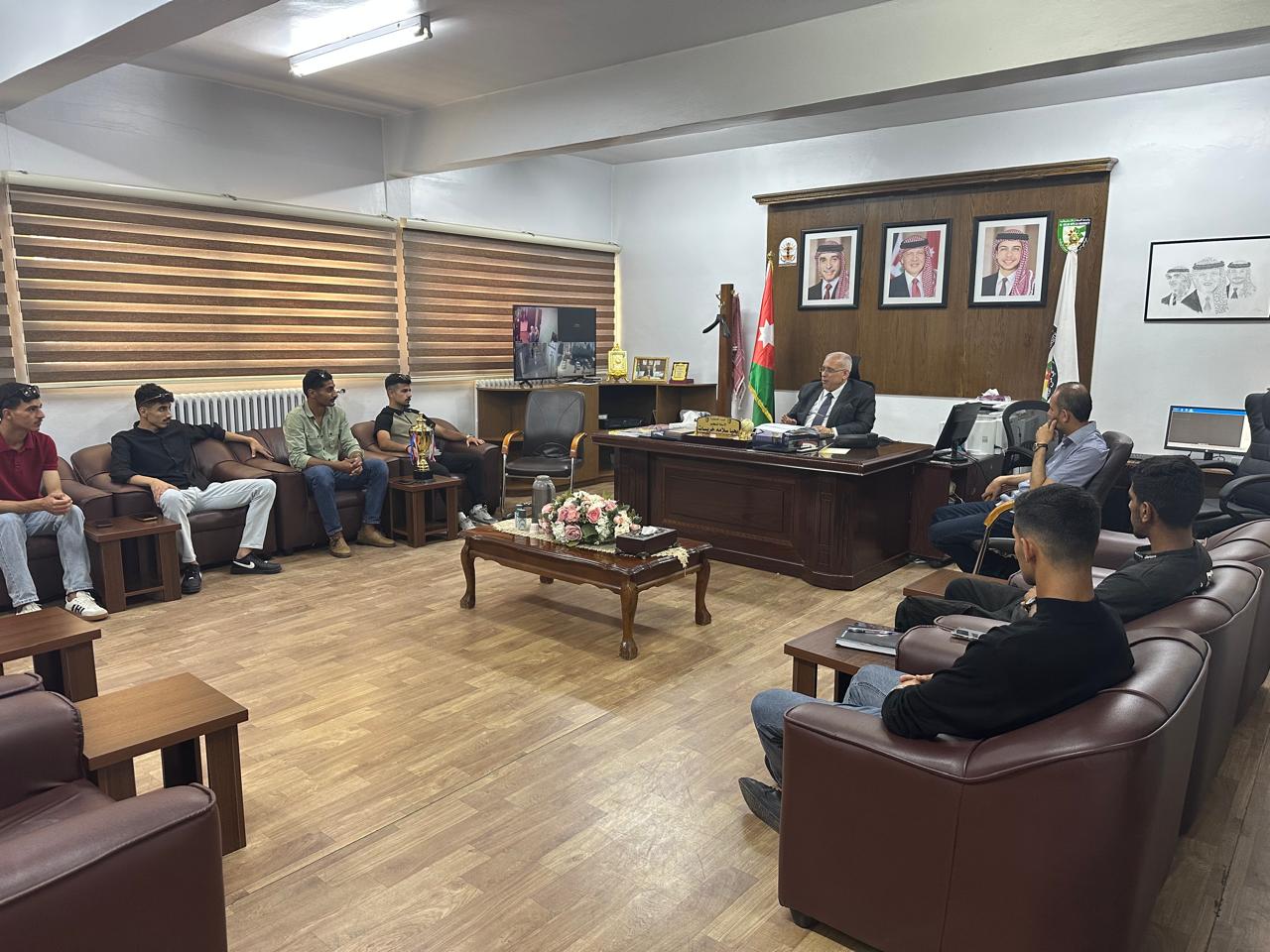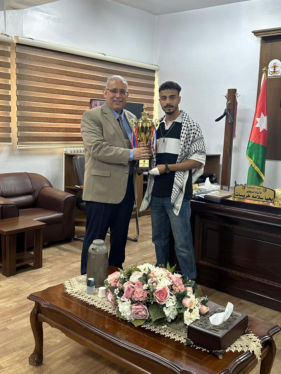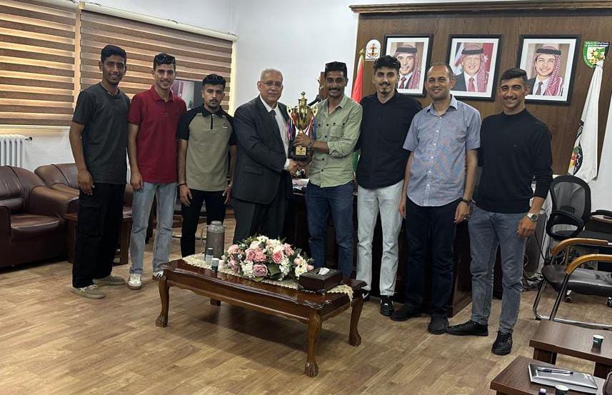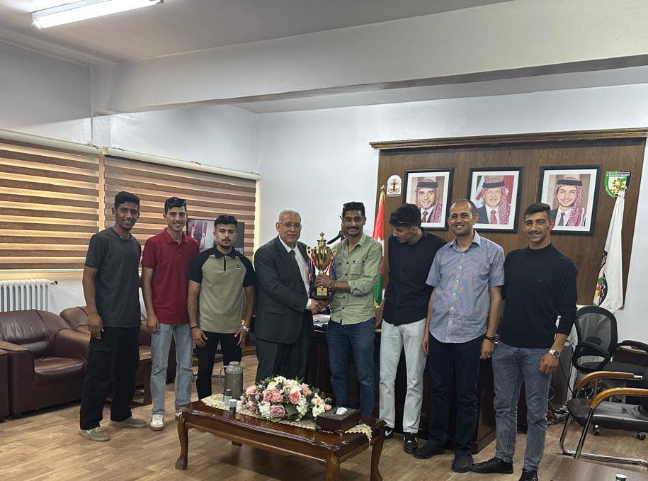 فريق كرة قدم كلية اربد الجامعية يسلم كأس البطولة لعميد الكلية