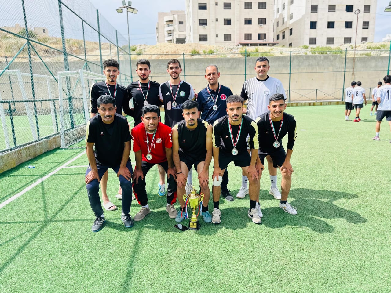 وقد شارك الفريق في بطولة خماسي كرة القدم التي نظمها الاتحاد الرياضي للكليات الجامعية والجامعية المتوسطة في الجامعة بمشاركة 16 كلية من كليات حكومية وعسكرية وخاصة، وتم تحقيق العلامة الكاملة بصعود فريق الكلية بطلا للمجموعة بالفوز على فريق مركز الجامعة / السلط بنيجة 10/4 و على فريق كلية الحصن الجامعية بنتيجة 5/2 و على فريق كلية لومنيوس بتتيجة 3/0، وتم تأهلهم بنتيجة 3/1 بالفوز على كلية العقبة في الربع النهائي للبطولة، ومن ثم تم الفوز على كلية الهندسة التكنولوجية بركلات الترجيح بنتيجة 4/3 بعد تعادل هدف لهدف.