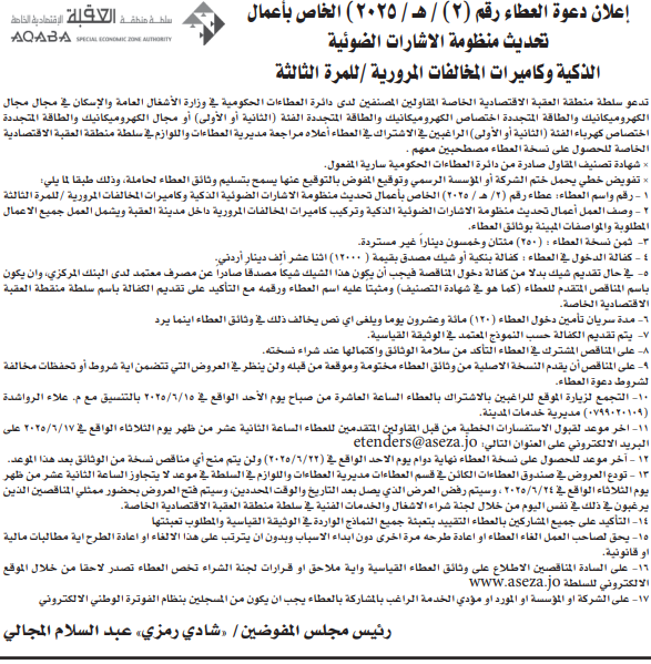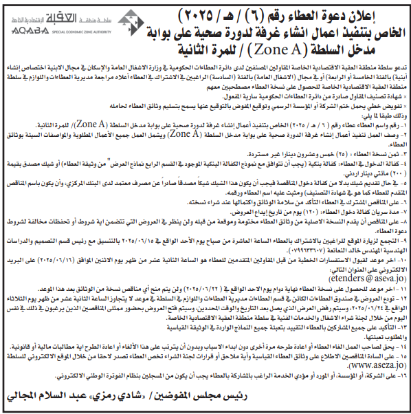 عطاءات صادرة عن سلطة منطقة العقبة
