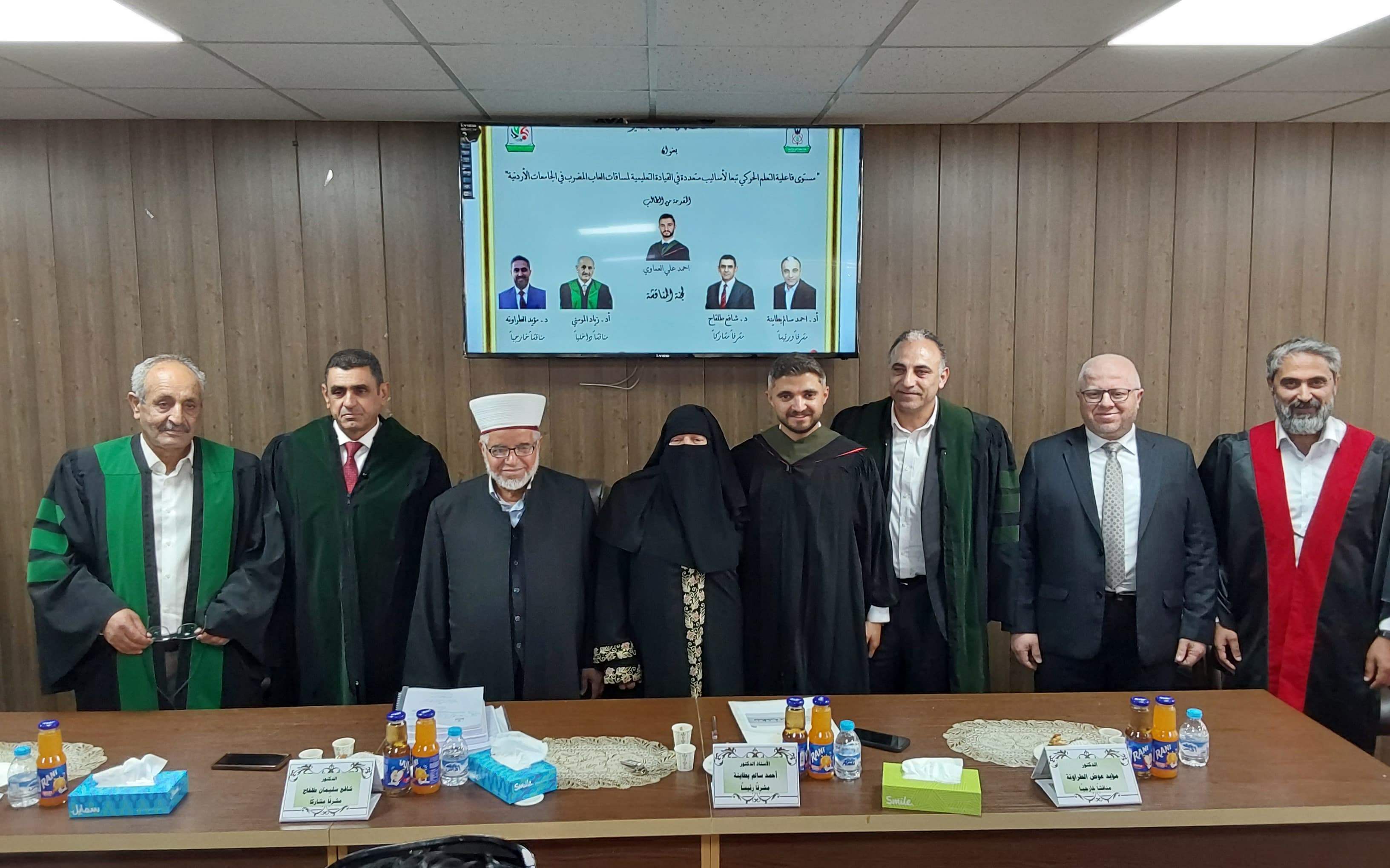 وقد وكانت الرسالة بعنوان "مستوى فاعلية التعلم الحركي تبعا لأساليب متعددة في القيادة التعليمية لمساقات العاب المضرب في الجامعات الأردنية" والتي اشرف عليها الأستاذ الدكتور احمد سالم بطانية والدكتور شافع طلفاح مشرفا مشاركا والأستاذ الدكتور زياد المومني مناقشا داخليا والدكتور مؤيد الطراونة مناقشا خارجيا.