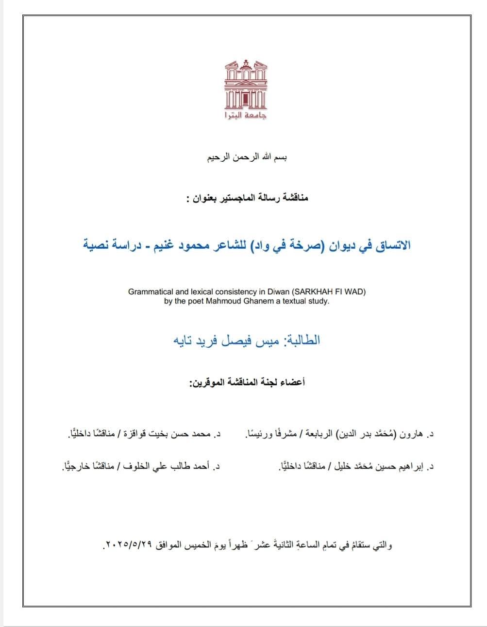 "اللغة العربية" بدرجة 'ممتاز' من جامعة البترا ..