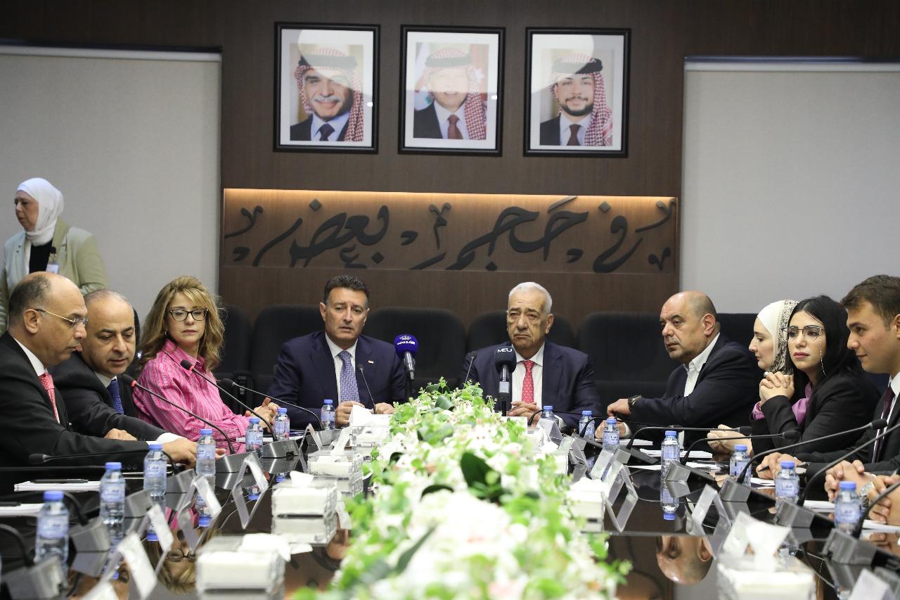 من جانبه، أكد رئيس مجلس النواب أحمد الصفدي، أن الجبهة الداخلية المحصنة هي العنوان والسر في قوة الأردن بمواجهة التحديات، مشددًا على أهمية تمكين الشباب وتوفير الفرص الحقيقية لهم للوصول إلى مواقع المسؤولية. كما تبنّى مبادرة لعقد خلوة لرؤساء البرلمانات والاتحادات الطلابية بالتعاون مع مجلس النواب الاردني وجامعة الشرق الأوسط، لتعزيز التواصل بين المؤسسات الدستورية والشباب.