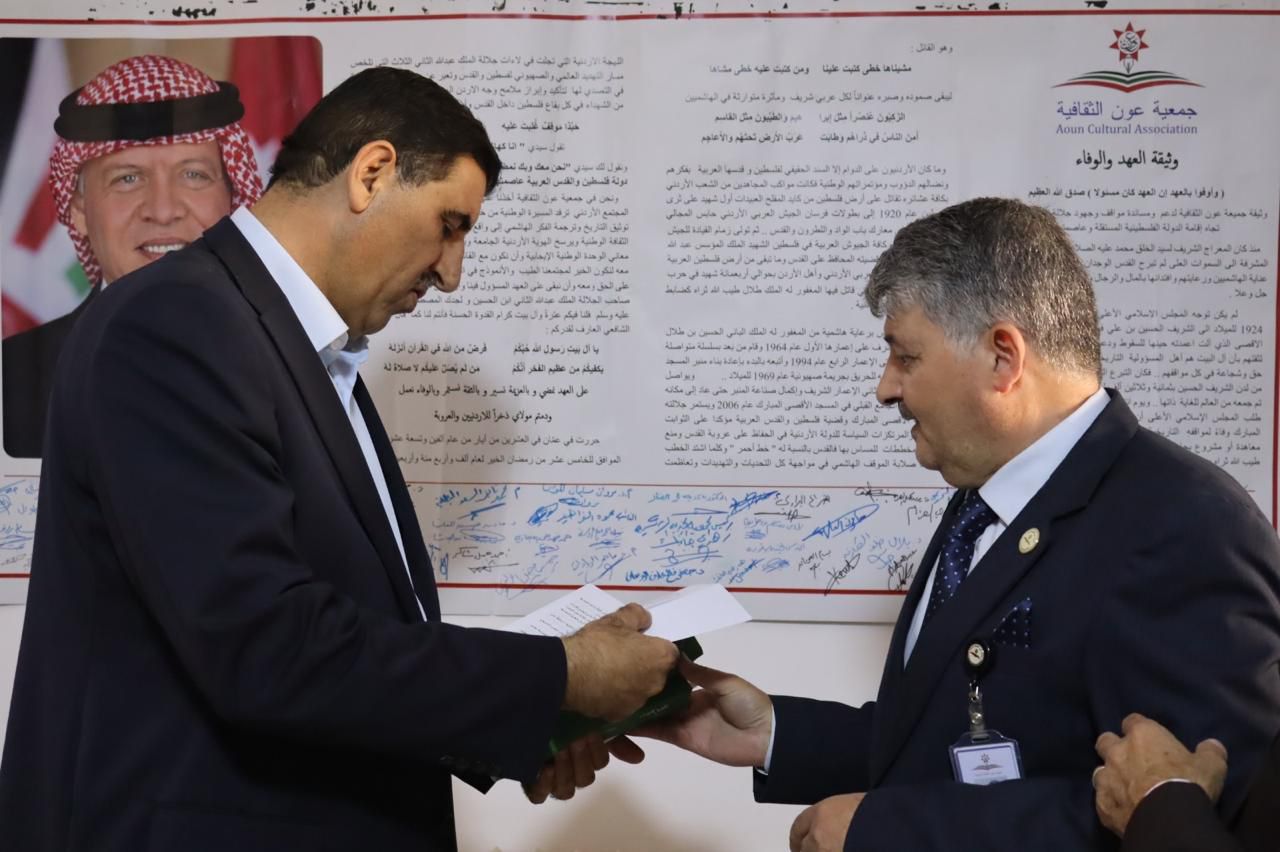 مؤكداً على أن نهج جمعية عَون الثقافية الوطنية يقوم على التواصل المباشر والإلتقاء مع جميع الأردنيين على إمتداد رقعة وطننا الحبيب للإستفادة من علمهم وخبراتهم وتجاربهم ونقلها للأجيال القادمة،لذلك فإن باب الإنتساب للجمعية مفتوح للجميع ومتاح في أي وقت.
