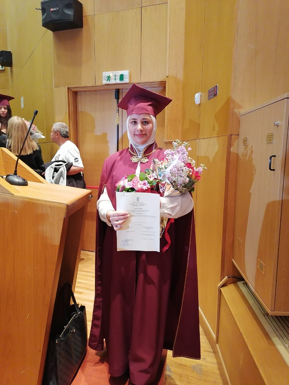 عمون - يتقدم الحاج نواش عواد القاضي وزوجته الحاجة ام محمد وأبنائهم بأسمى آيات التهاني والتبريكات لأبنتهم الدكتورة روابي نواش القاضي بمناسبة حصولها على درجة الماجستير في الصيدلة بدرجة الامتياز من جامعة أثينا في دولة اليونان . |