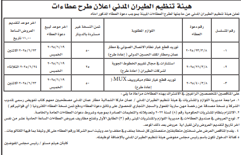 عطاءات صادرة عن هيئة تنظيم الطيران المدني