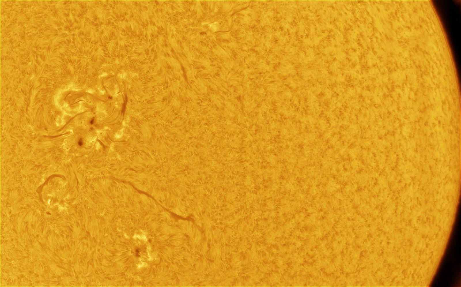عمون - تزامنا مع عدة انفجارات شمسية، التقط مرصد الختم الفلكي صورة توثق النشاط الشمسي ظهر يوم الأحد، باستخدام تلسكوب شمسي متخصص (هيدروجين ألفا)، وتظهر العديد من البقع الشمسية كنقع سوداء داكنة. |