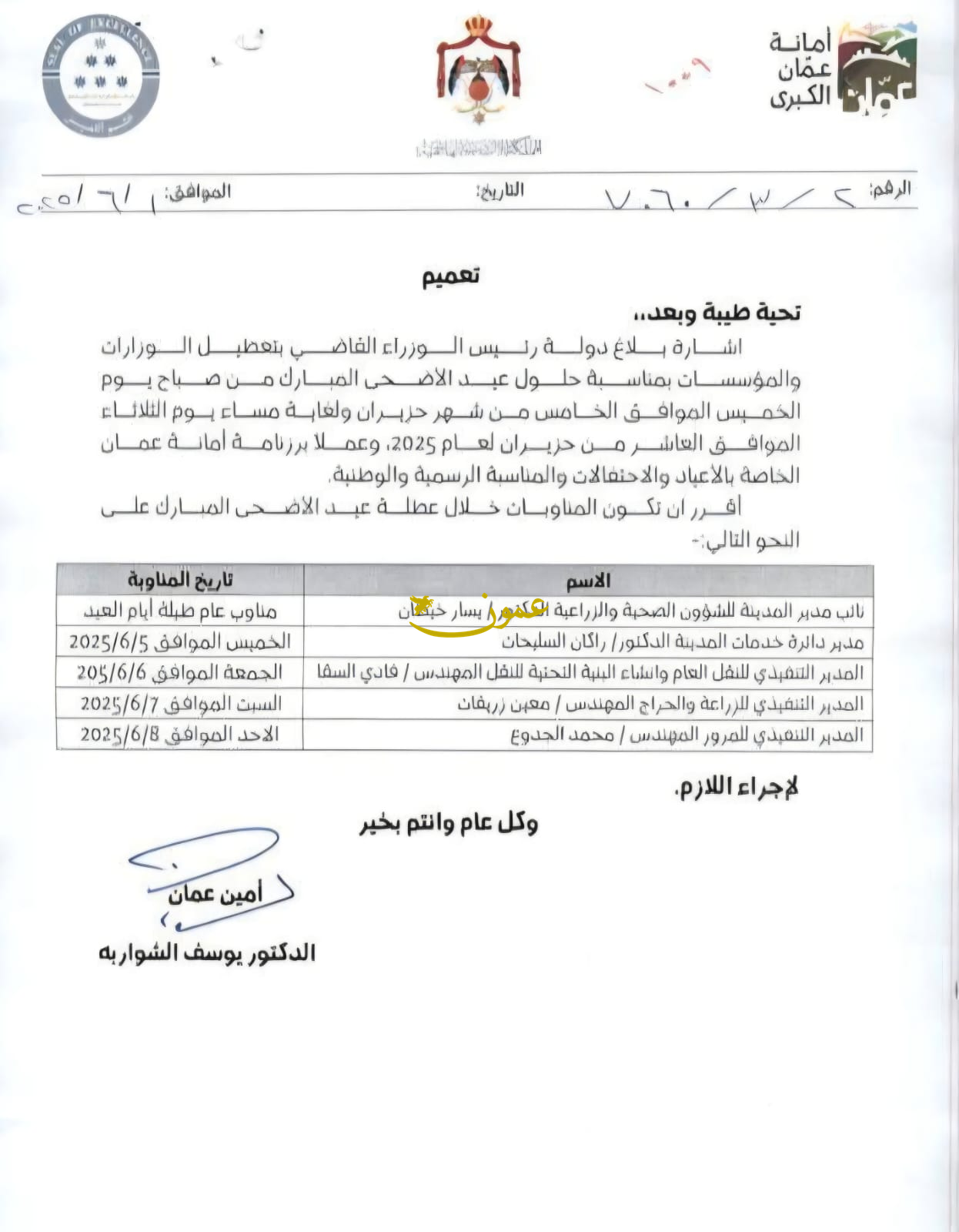أمانة عمان تقر مناوبات العيد02-06-2025 08:00 AM