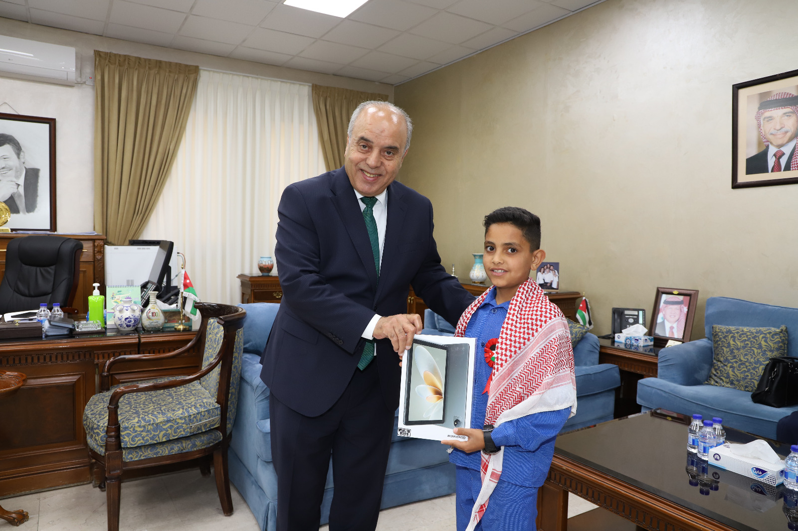 جاء ذلك خلال تكريم الدكتور محافظة في مكتبه، الطالب عابد أبو محفوظ من مدرسة سالم الثانوية المختلطة التابعة لمديرية التربية والتعليم للواء الموقر، بحضور مدير التربية والتعليم الدكتور عبدالرحمن الزبن، ومديرة مدرسة سالم الثانوية المختلطة عائشة الموالي، ووالدة الطالب أبو محفوظ.