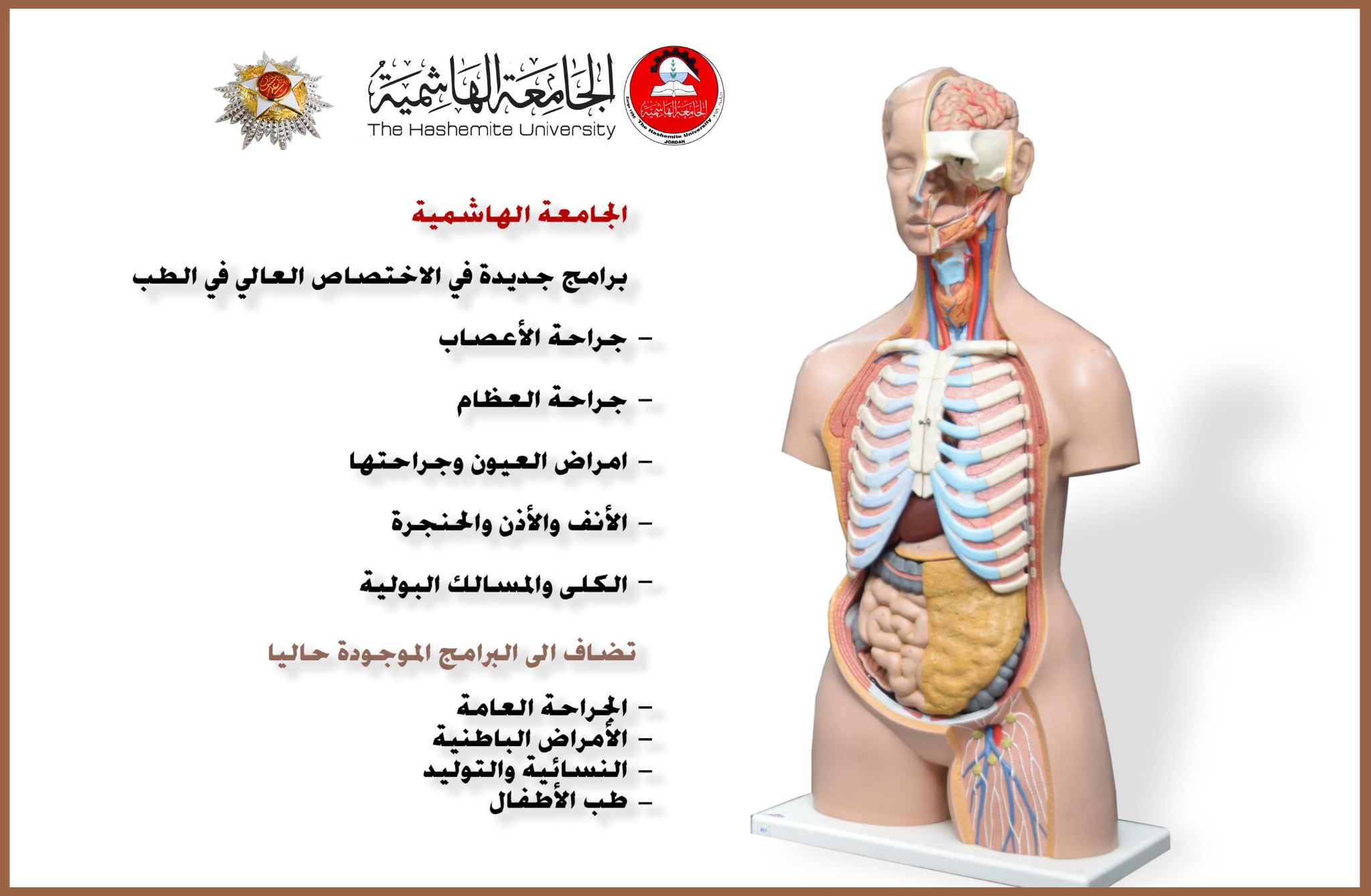بهذه الإضافة النوعية يرتفع عدد برامج الاختصاص العالي في كلية الطب البشري في الجامعة الهاشمية إلى تسعة برامج، حيث تطرح حاليا برامج في الجراحة العامة، والأمراض الباطنية، والنسائية والتوليد، وطب الأطفال، ما يجعل من الكلية مركزاً متكاملاً ومتميزاً للتعليم الطبي العالي في المملكة.