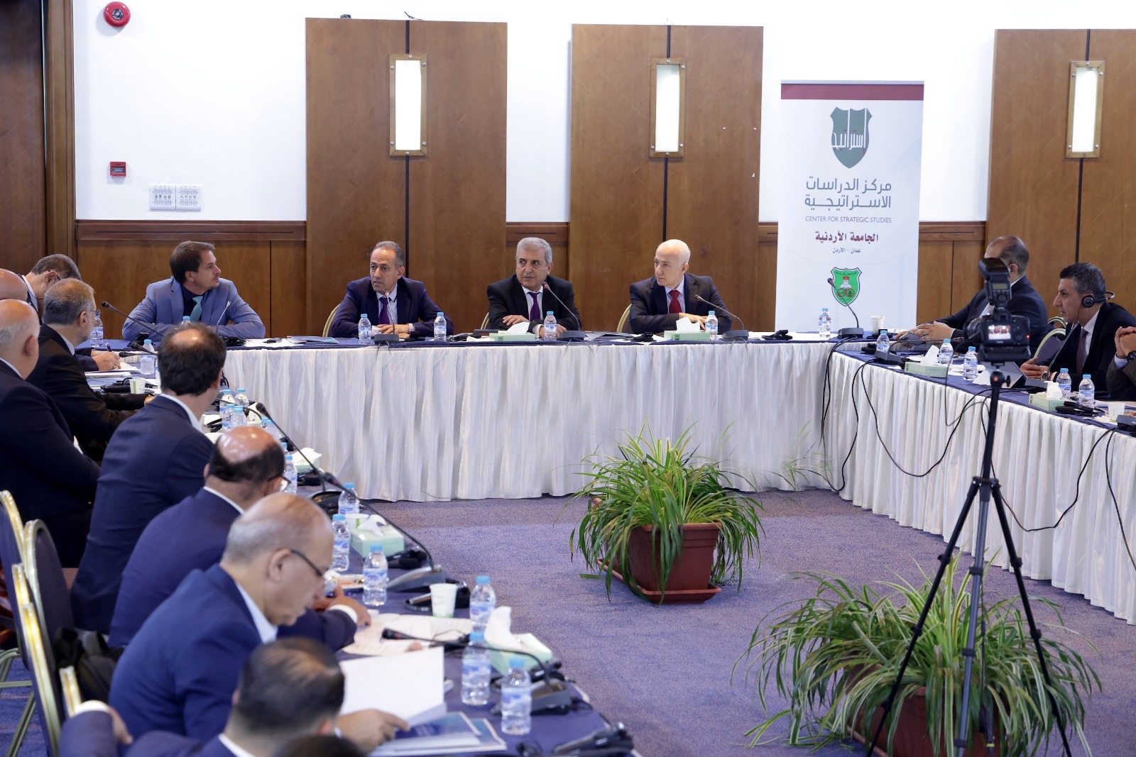 ورعى افتتاحَ الجلسة مندوبا عن رئيس الجامعة نائبُه للشؤون الإداريّة والماليّة الدكتور زياد حوامدة، الذي رحّبَ بالمشاركين ونقلَ تحيّاتِ رئيس الجامعة، مؤكِّدًا أهميّةَ المنتدى في دعم جهود الاستقرار والتعاون الإقليميّ، وقال حوامدة: "إنَّ مركزَ الدراسات الاستراتيجيّة يُؤدّي دورًا محوريًّا في دراسةِ القضايا الإقليميّة وتقديمِ توصيات عمليّة لصنّاع القرار".