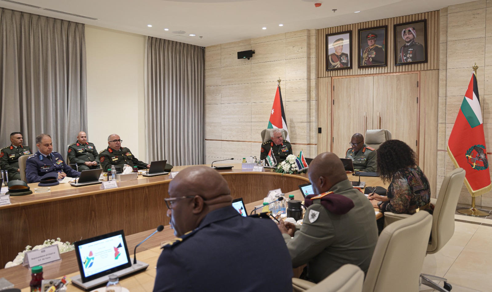وبحث اللواء الركن الحنيطي مع الضيف بحضور سفيرة جنوب أفريقيا والملحق الدفاعي لدى المملكة، وعدد من كبار ضباط القوات المسلحة الأردنية، أوجه التعاون والتنسيق المشترك، وتبادل الخبرات في مجالات التدريب والتأهيل، وآخر المستجدات الإقليمية والدولية ذات الاهتمام المشترك، والتحديات الأمنية الراهنة.