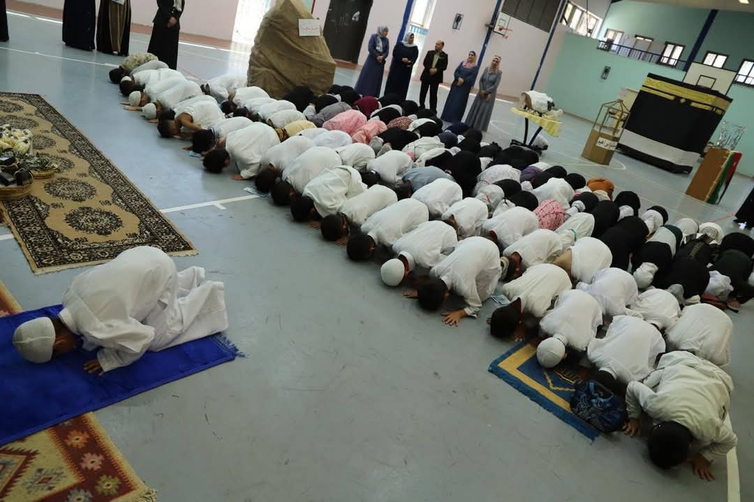 عمون - مندوباً عن مدير التربية والتعليم لمحافظة العقبة رعت مديرة الشؤون الإدارية والمالية الدكتورة ايمان العبيسات فعاليات النشاط المدرسي "شعائر الحج" بمدرسة عائشة بنت ابي بكر الأساسيَّة المختلطة بحضور رئيس قسم التعليم الخاص الدكتور انس الصمادي ومديرة المدرسة ايمان النسور والمشرفة الإدارية للشبكة أمل الخلفات و المشرفات نسرين أبو صيام وحنين عبد اللطيف والهيئة الإدارية والتدريسية في المدرسة وأولياء أمور الطلبة. |
