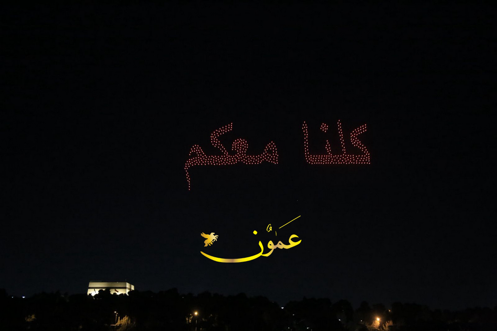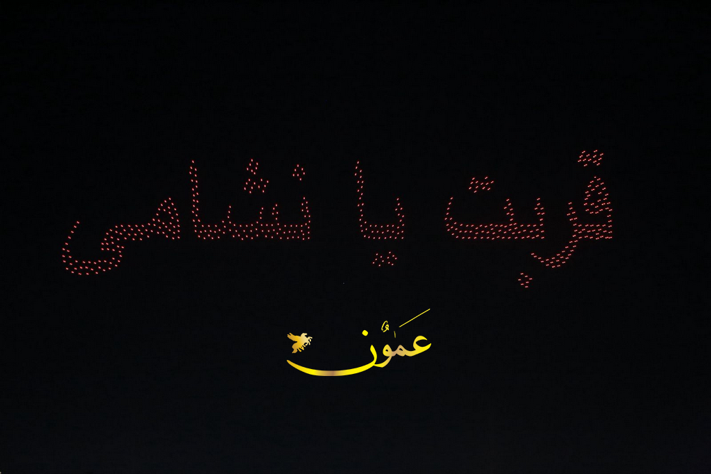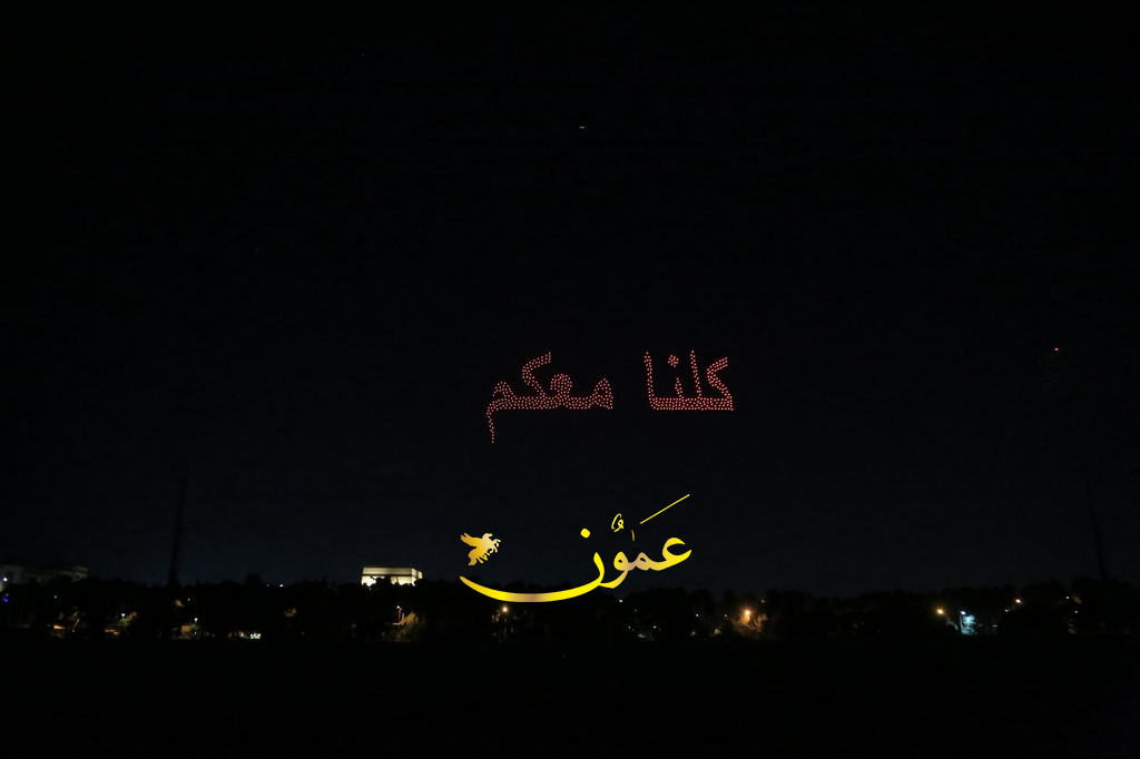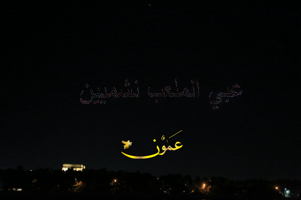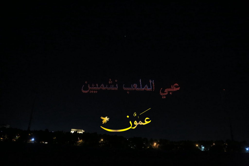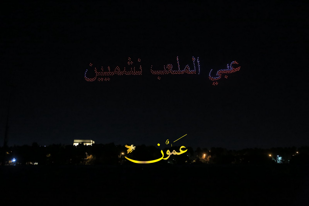 عمون - في مشهد احتفالي مميز، زينت عروض الطائرات المُسيّرة (الدرون) سماء الأردن، احتفاءً بثلاث مناسبات وطنية : عيد الجلوس الملكي، ويوم الجيش، وفوز المنتخب الوطني الأردني لكرة القدم على نظيره العُماني في المرحلة النهائية من تصفيات كأس العالم. |