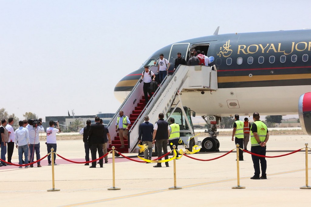 برفقة ولي العهد .. النشامى يصلون أرض الوطن (صور)