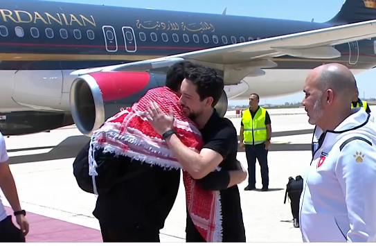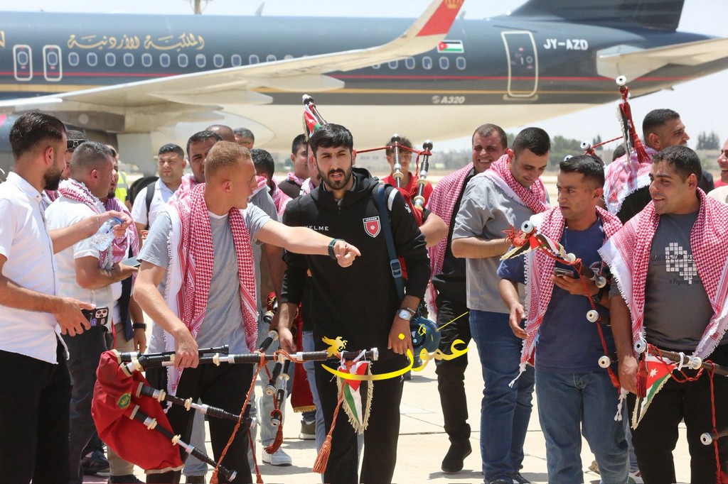 وكان نائب جلالة الملك، سمو الأمير فيصل بن الحسين، رئيس اللجنة الأولمبية الأردنية، وسمو الأمير هاشم بن عبدالله الثاني، في استقبال سمو ولي العهد ولاعبي المنتخب وطواقمه لدى وصولهم مطار الملكة علياء الدولي.