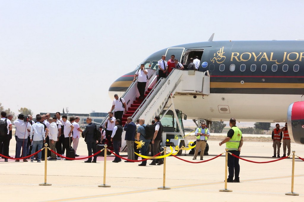 ورافق سمو ولي العهد، في رحلة العودة للأردن، سمو الأمير علي بن الحسين، رئيس الاتحاد الأردني لكرة القدم ورئيس اتحاد غرب آسيا لكرة القدم.