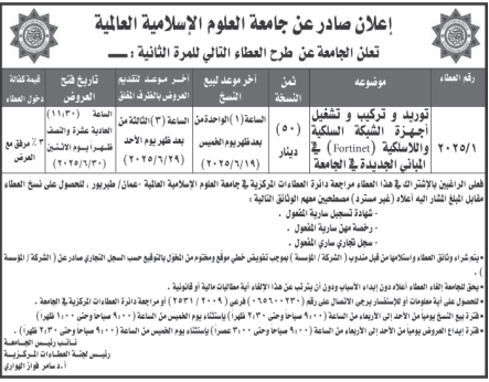 عطاء صادر عن جامعة العلوم الاسلامية العالمية