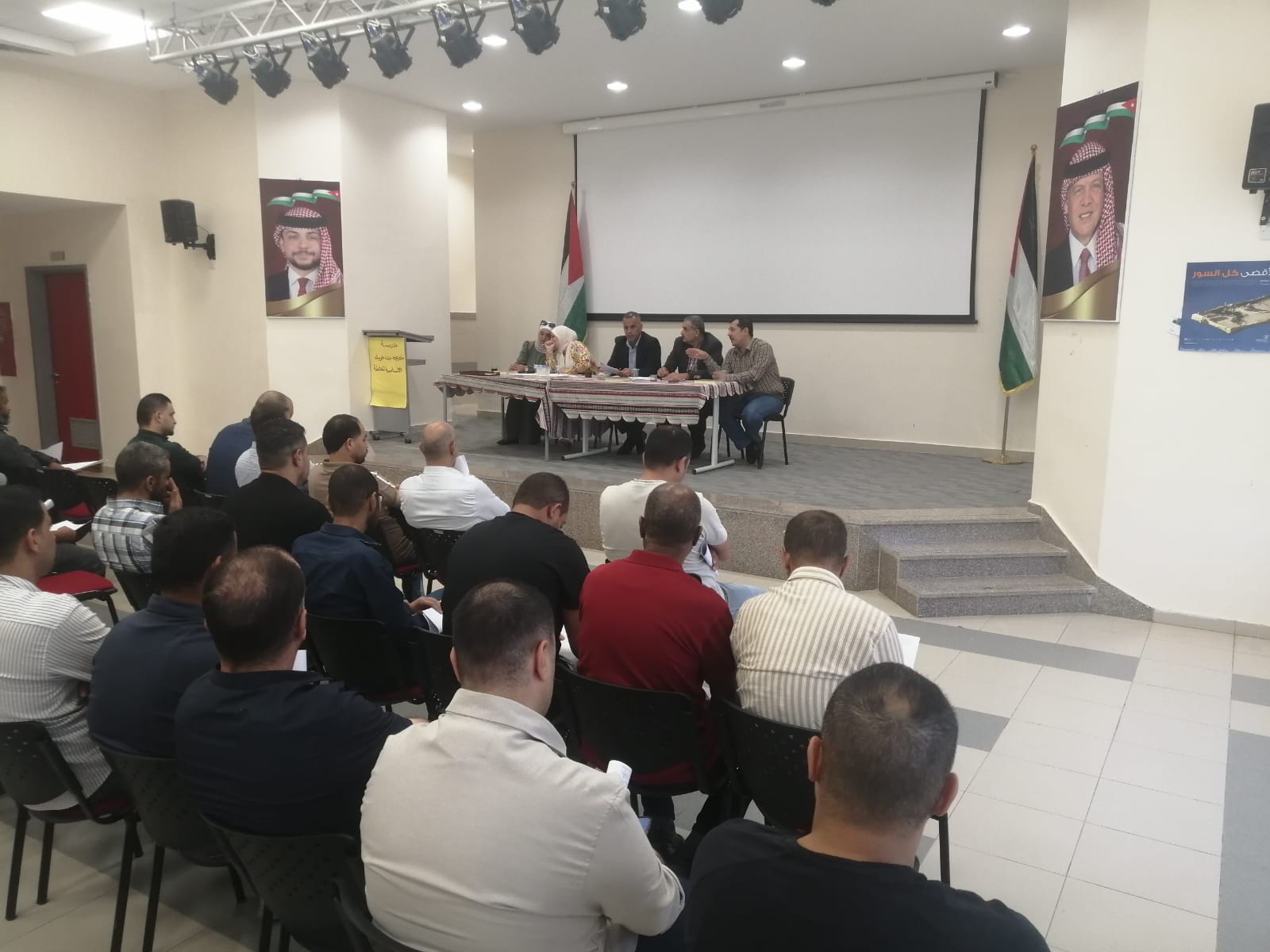 من جانبه استعرض رئيس قسم الامتحانات د.محمد ثلجي إجراءات سير الامتحان وواجبات المراقب،والتعليمات المنصوص عليها من قبل وزارة التربية والتعليم، ودور المراقب بإرشاد الطلبة والتأكد من تعبئة المعلومات على دفتر الإجابة، وورقة الاسئلة ونموذج الإجابة (الماسح الضوئي) ومتابعة عملية التظليل للإجابات بطريقة صحيحة وسليمة .