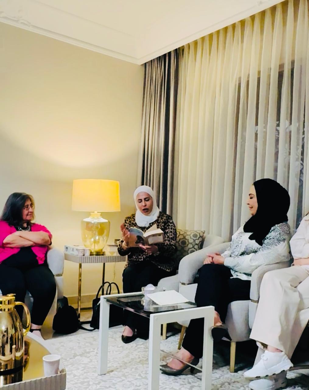 -هيام ضمرة د. دلال عنبتاوي -سارة طالب السهيل - رنا بسيسو ..د. بتي الصقرات - د. هناء البواب..فايزة عبد الكريم الفالح - ميّ الأعرج..اعتماد سرسك - د. جيهان الشهابي..د. فداء أبو فردة ..ميرنا حتقوة - يسرى عبد الرحيم وكريمتاها: د. هديل القحطاني ود. هنادي القحطاني - أم وسام المبيضين -زهرية الصعوب- رئيسة دارة المشرق للفكر والثقافة.