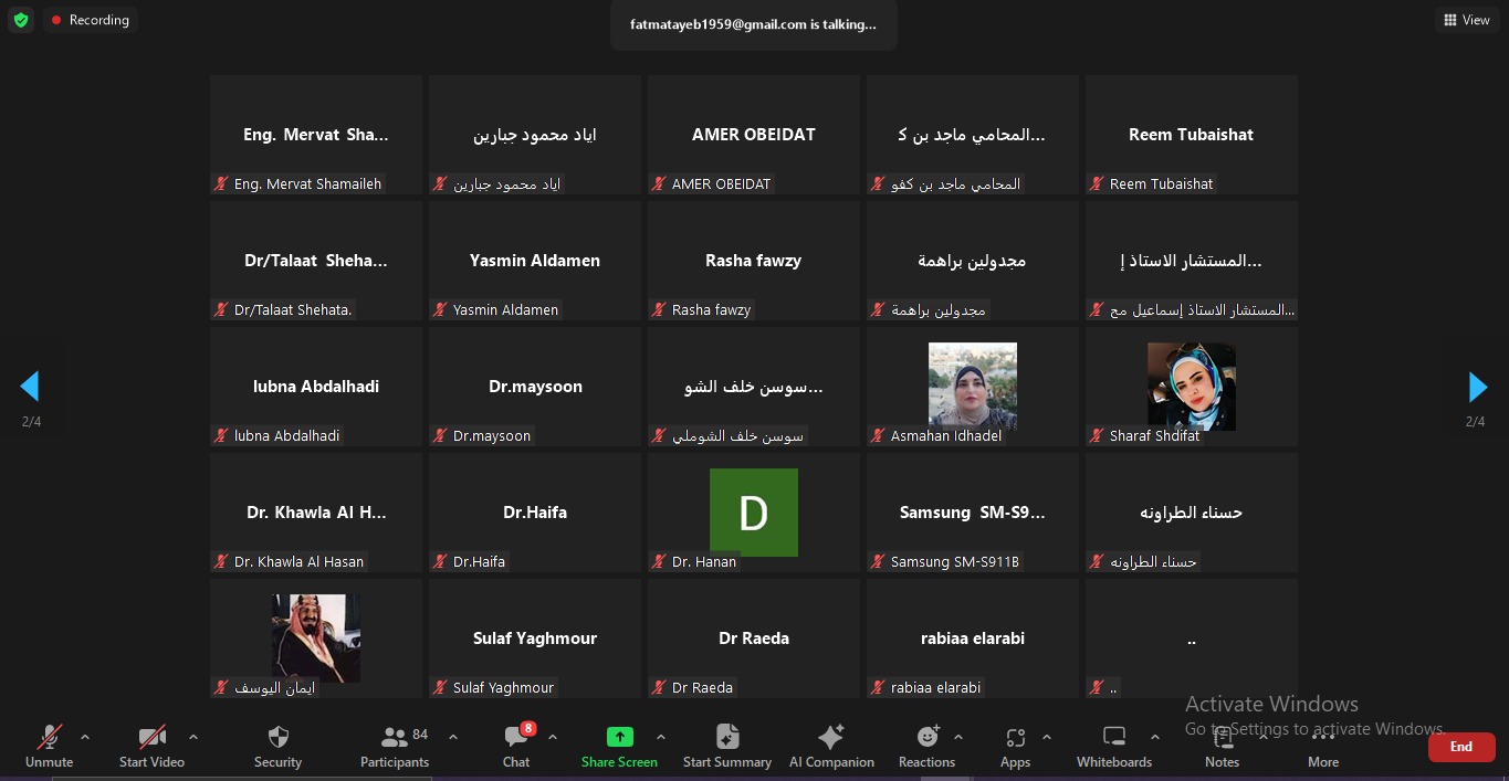الأستاذة عاطفة سويد (سوريا/ألمانيا) – عملت في السفارة السورية في المانيا قدمت خبرتها في العمل الدبلوماسي السابق مشيرة للدبلوماسية الناعمة .