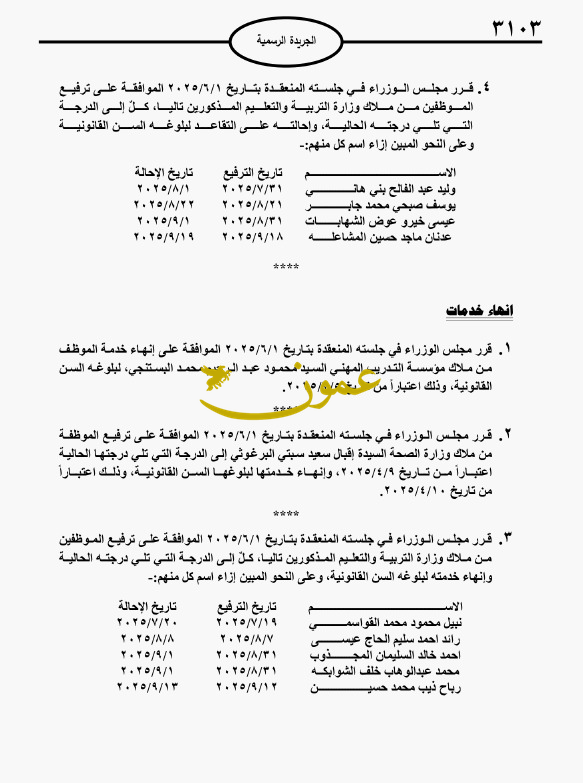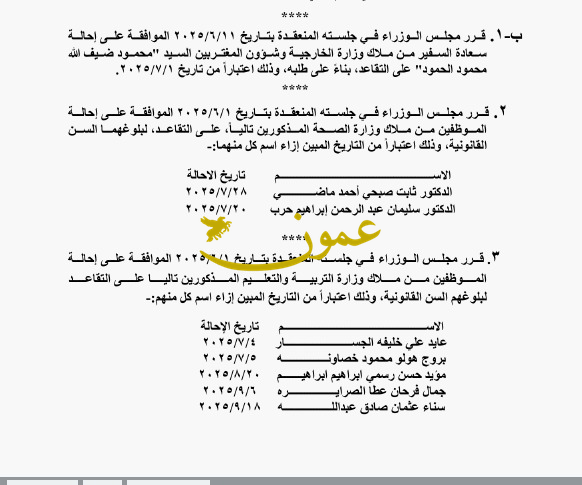 إحالات الى التقاعد وترفيع موظفين (أسماء)