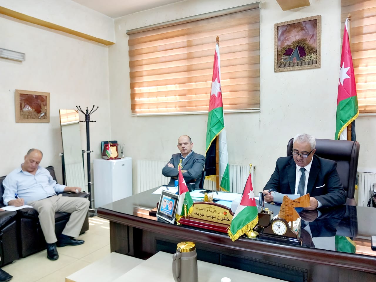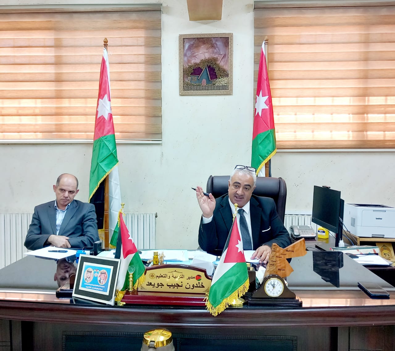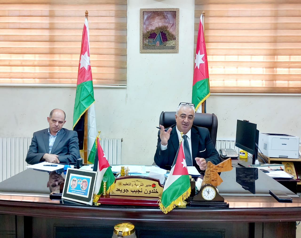 عمون - التقى مدير التربية والتعليم لمحافظة عجلون الأستاذ خلدون جويعد في مكتبه فريقا من إدارة التخطيط والبحث التربوي وإدارة العلاقات الثقافية والعامة ممثلا بالدكتور جعفر الهروط والدكتور أحمد القواسمة والدكتورة نجوى الدقس بحضور مدير الشؤون التعليمية الدكتور أويس الصمادي ورئيس قسم الإشراف الدكتور منصور العرود ومنسق جائزة الملكة رانيا للتميز التربوي المشرف علي الصمادي و عدد من مديري ومديرات المدارس الرائدة في الجائزة منها مدرسة بلاص الثانوية للبنين والجبل الأخضر الثانوية المختلطة والخنساء الثانوية المختلطة وعائشة الباعونية الأساسية المختلطة.