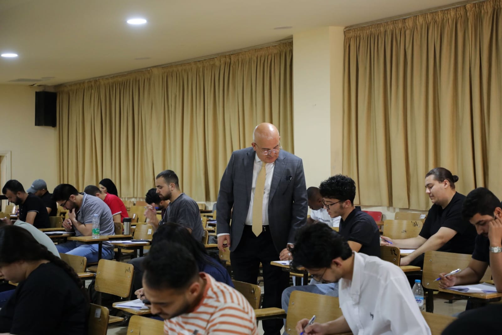 واستمع رئيس الجامعة خلال جولته إلى ملاحظات عدد من الطلبة، وآرائهم عن مستوى الاسئلة وشموليتها، وقد عبّر عدد من الطلبة عن رضاهم عن الأجواء العامة للامتحانات والتنظيم المميز الذي لمسوه خلال فترة الامتحانات.