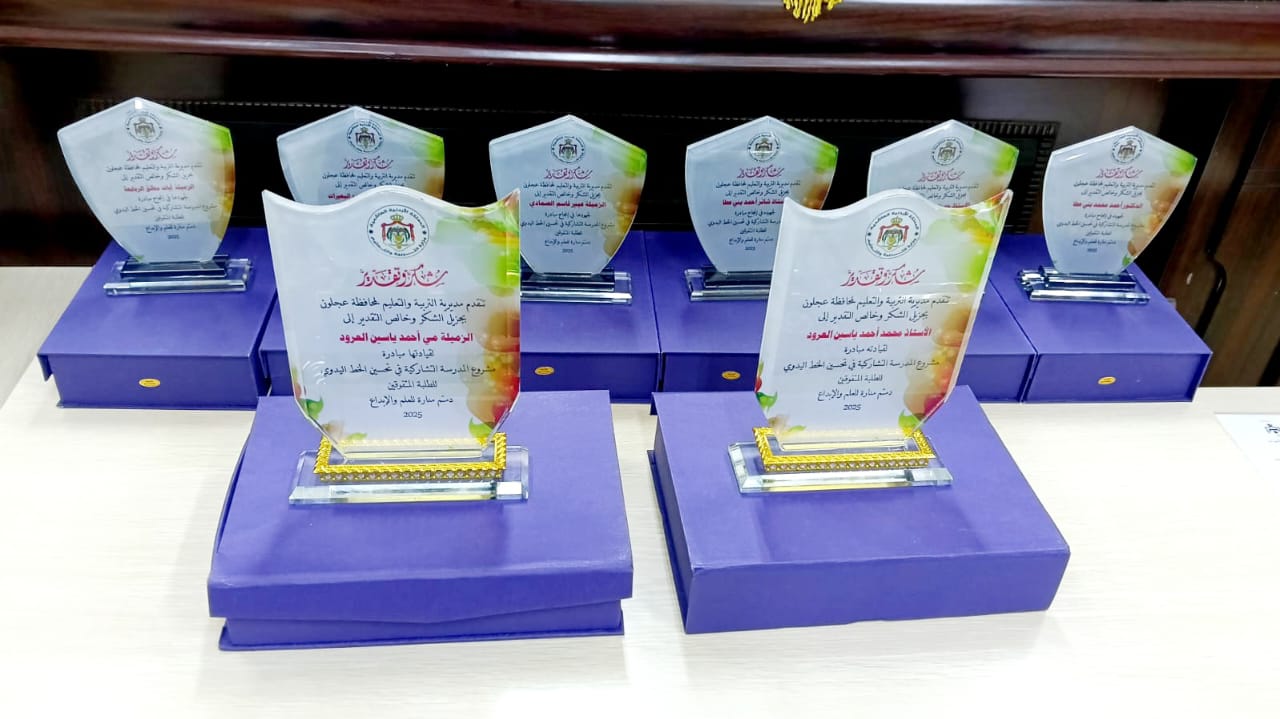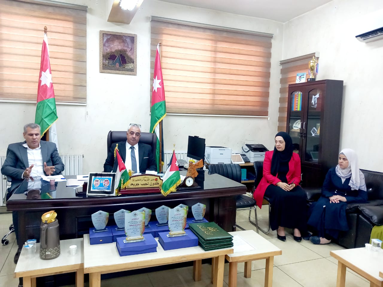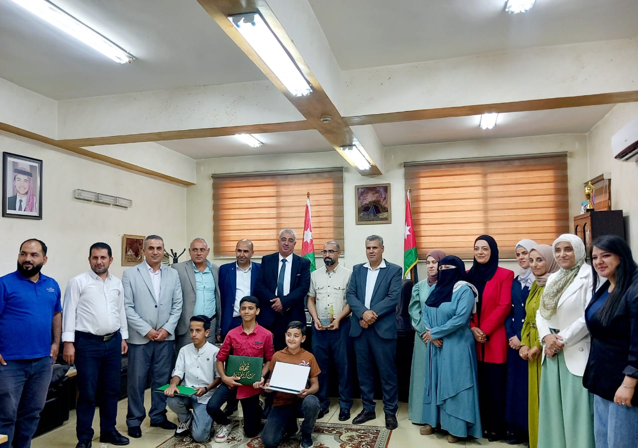 عمون - كرّم مدير التربية والتعليم لمحافظة عجلون الأستاذ خلدون جويعد أعضاء مبادرة(مشروع المدرسة التشاركية في الخط اليدوي للطلبة المتفوقين) التي أطلقها الأستاذ محمد العرود من مدرسة أوصرة الثانوية بنين بالتشارك مع الأستاذة مي العرود من مدرسة أوصرة الثانوية المختلطة بحضور رئيس قسم الإشراف التربوي الدكتور منصور العرود ورئيس قسم الرقابة الداخلية الدكتور أمجد القضاة ومشرفي اللغة العربية والرياضيات.