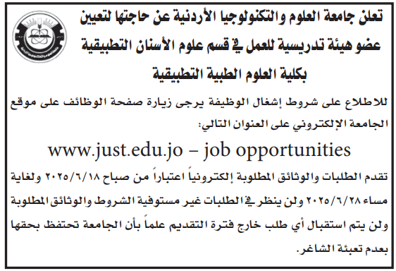 جامعة العلوم والتكنولوجيا بحاجة لتعيين عضو هيئة تدريسية