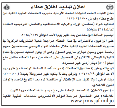عطاءات صادرة عن الخدمات الطبية الملكية
