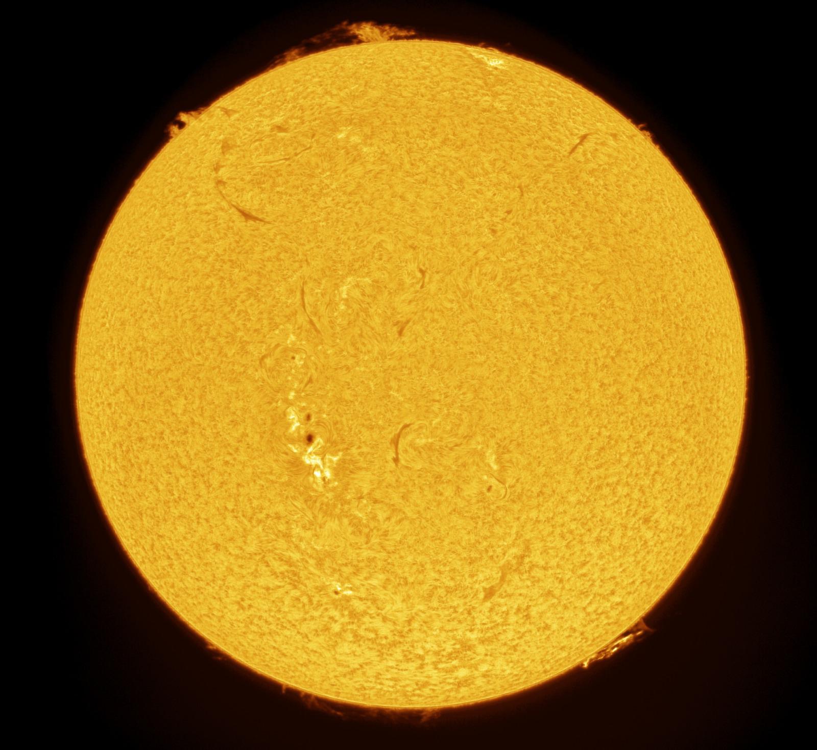 تم التصوير باستخدام تلسكوب شمسي متخصص (هيدروجين ألفا) بقطر 60 ملم، وتظهر على الحواف كيفية تحرك ألسنة اللهب، والمقذوفات النارية التي تظهر أحيانا. وتم استخدام كاميرا فلكية تتميز بقدرتها على انتاج صور ذات تكبير عالي، حيث يمكن تكبير الصورة من خلال الجوال مع بقاء التفاصيل واضحة.