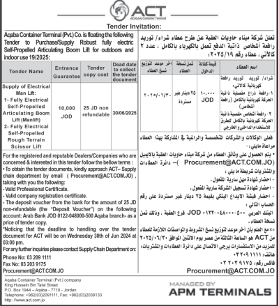 عطاء صادر عن شركة ميناء حاويات العقبة