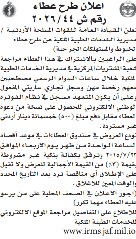 عطاء صادر عن الخدمات الطبية الملكية