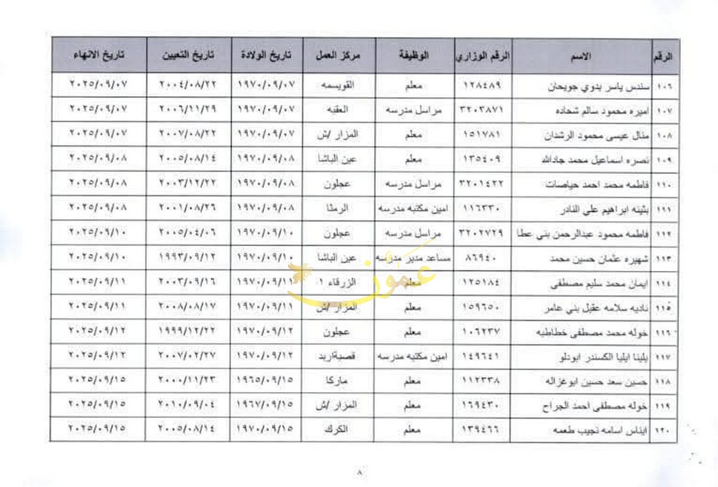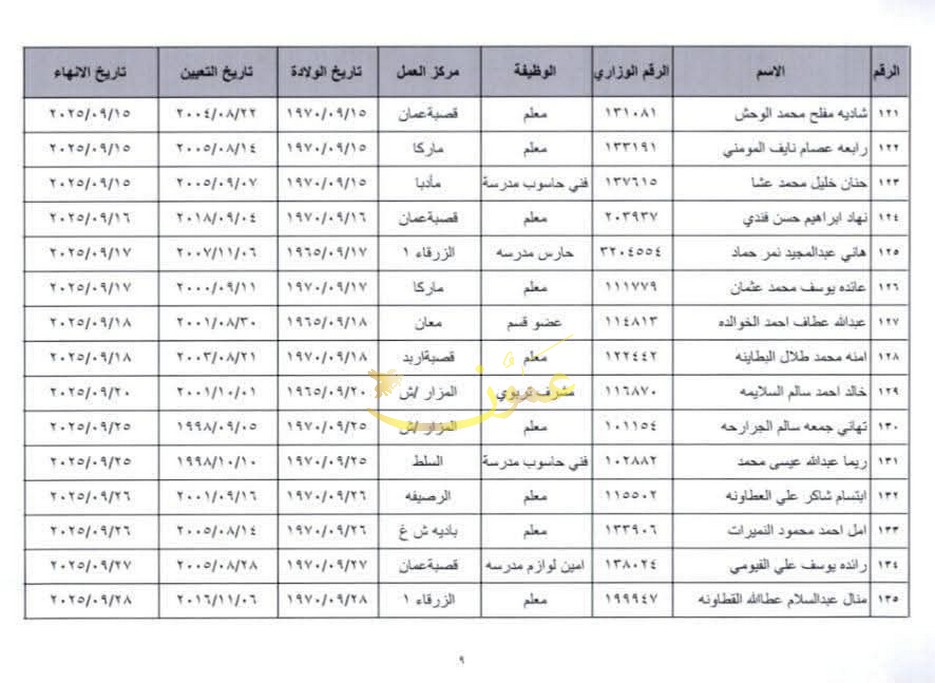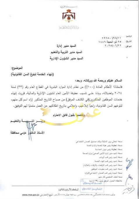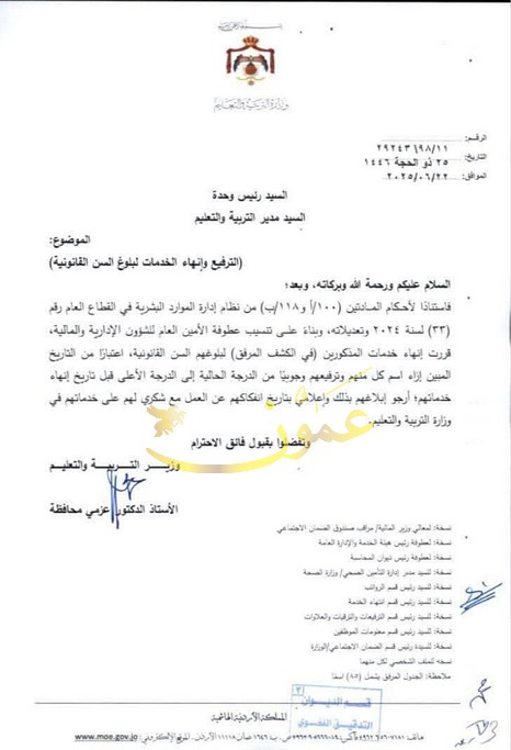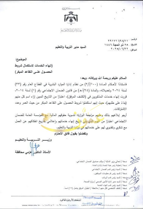 إحالات للتقاعد المبكر وانهاء خدمات في التربية (اسماء)23-06-2025 11:29 AM