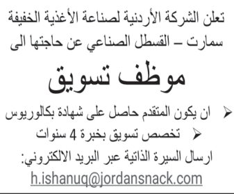 مطلوب موظف تسويق للعمل لدى شركة سمارت