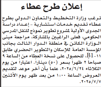 عطاء تقديم خدمات استشارية لوزارة التخطيط والتعاون الدولي