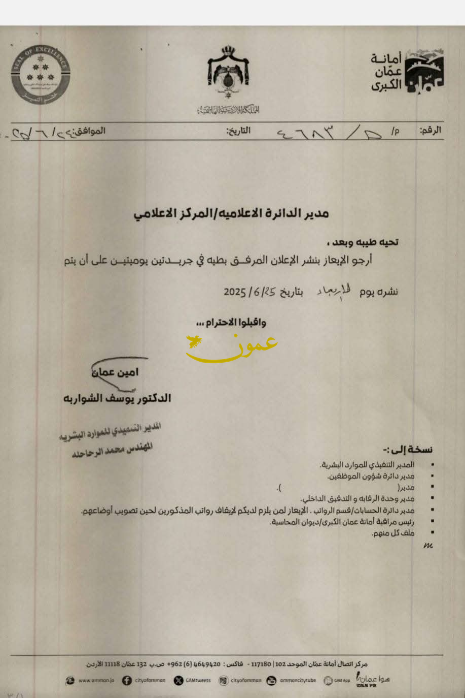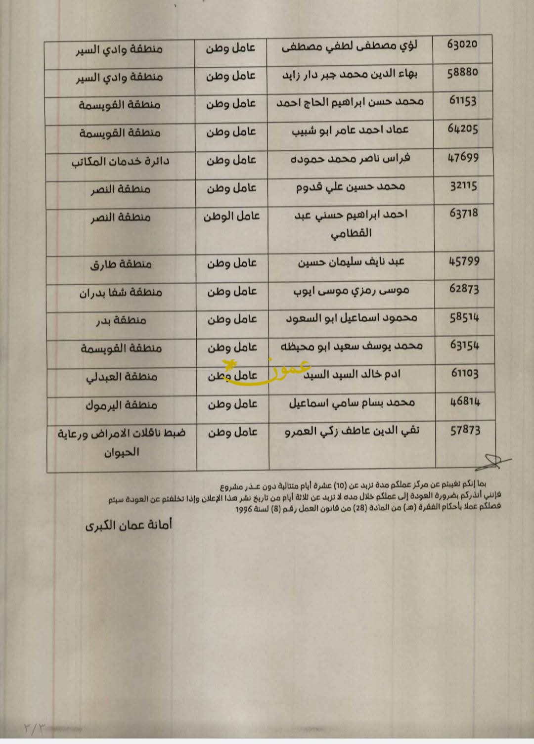 أمانة عمّان تنذر 35 موظفًا بالفصل (أسماء)24-06-2025 08:40 PM