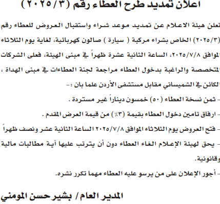 عطاء شراء سيارة كهربائية لهيئة الاعلام